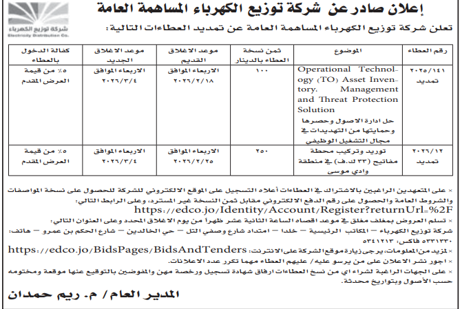 عطاءات صادرة عن شركة توزيع الكهرباء