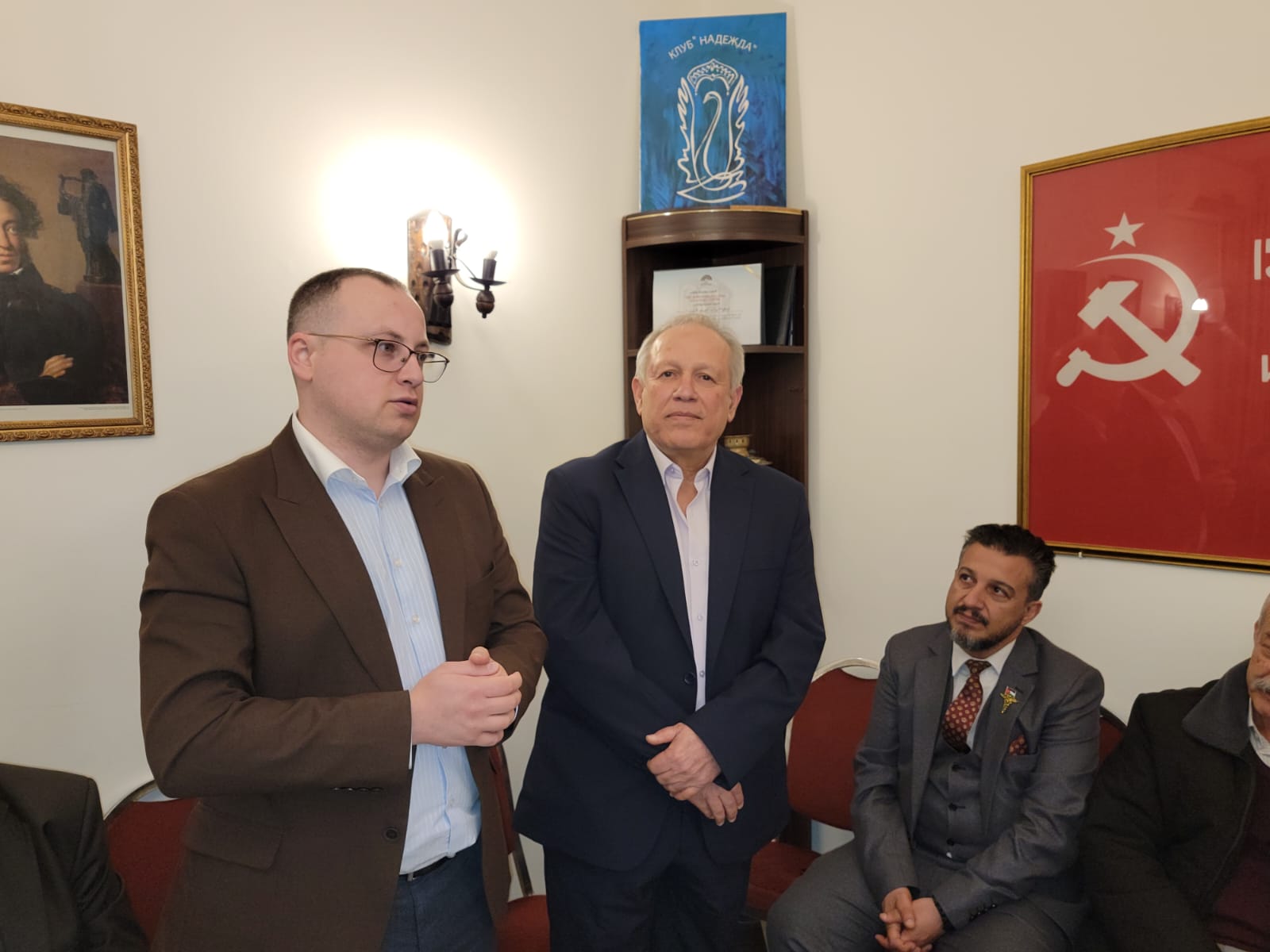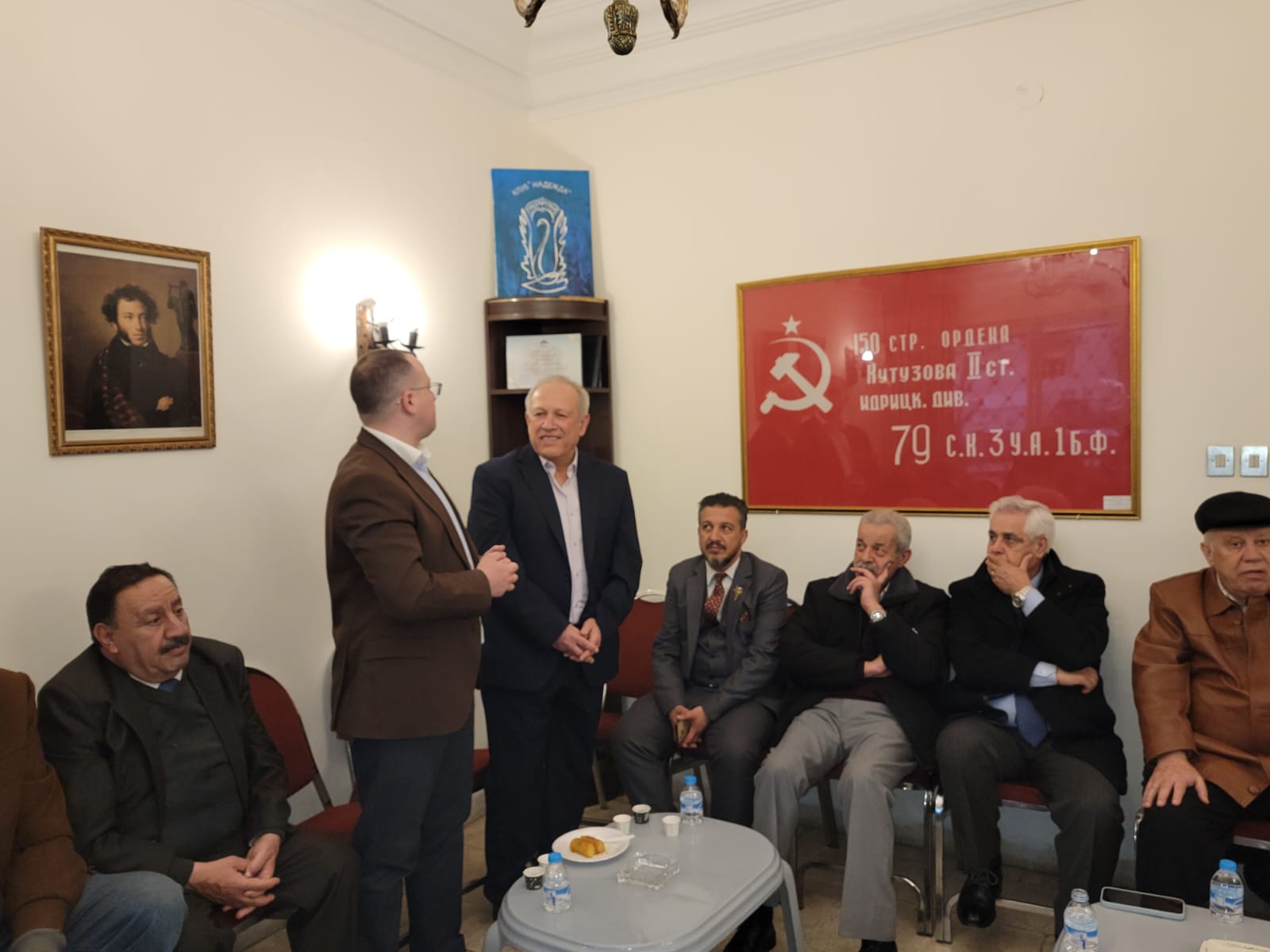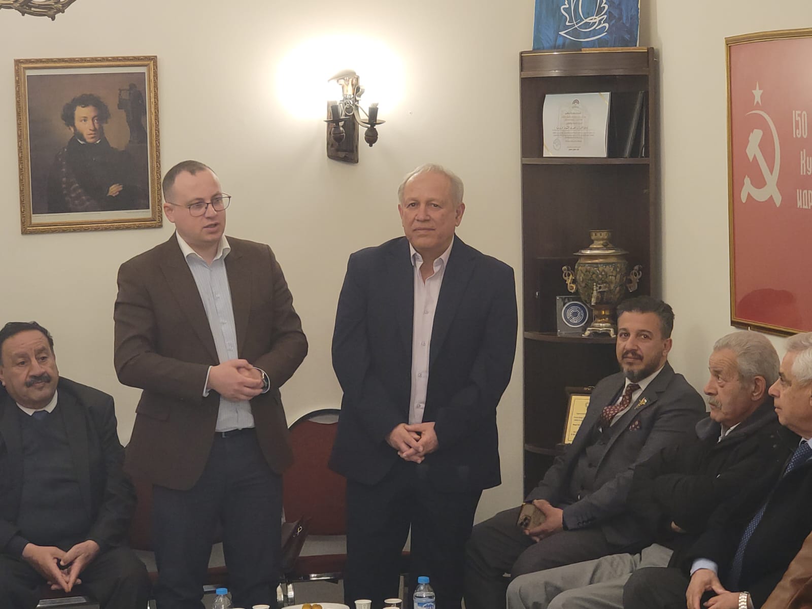 كما حضر اللقاء رئيس جمعية الصداقة الأردنية الروسية الأستاذ المحامي يوسف حمدان، والنائب جمال قموه، وعضو نقابة الأطباء الأردنية الدكتور محمد حسن الطراونة، إضافة إلى رئيس هيئة المكاتب وعضو مجلس نقابة المهندسين المهندس عيسى حمدان.