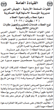 عطاء صادر عن القيادة العامة للقوات المسلحة الاردنية