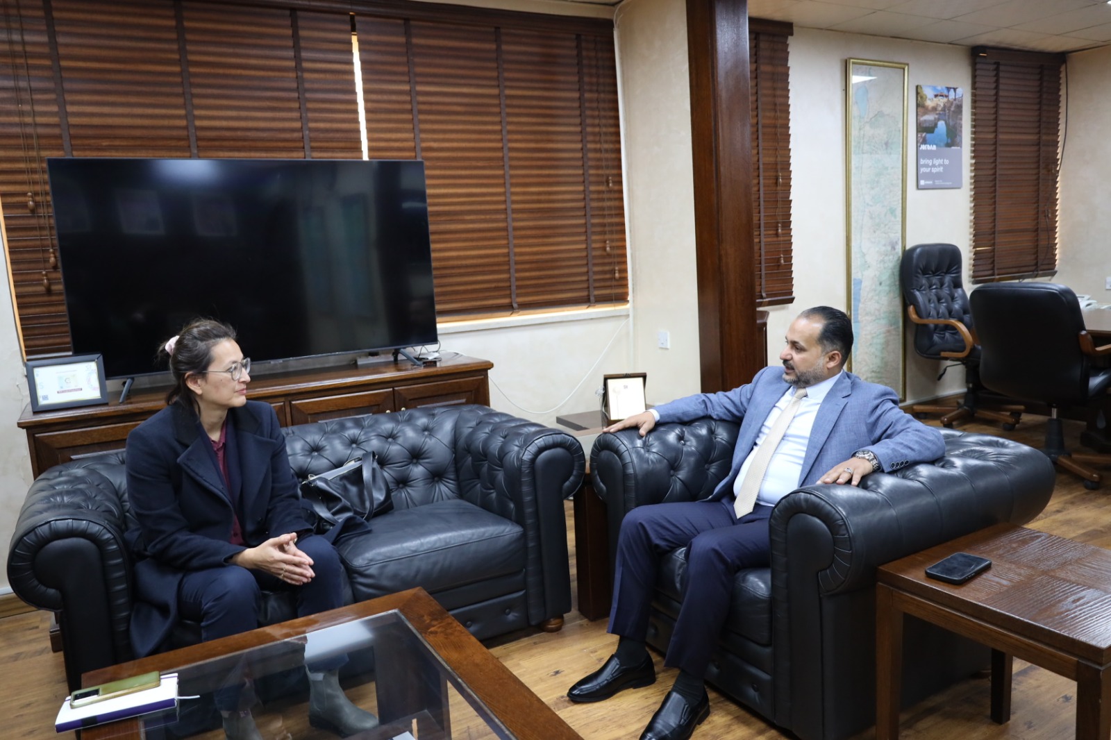 عمون - عقد أمين عام سلطة وادي الأردن، المهندس هشام الحيصة، اجتماعا مع المديرة الجديدة لمشروع حوكمة قطاع المياه في الوكالة الألمانية للتعاون الدولي (GIZ)، ياسمين فرايشلاد. واستعرض الحيصة مهام سلطة وادي الأردن والدور الحيوي الذي تضطلع به في إدارة وتنمية مصادر المياه في منطقة وادي الأردن .