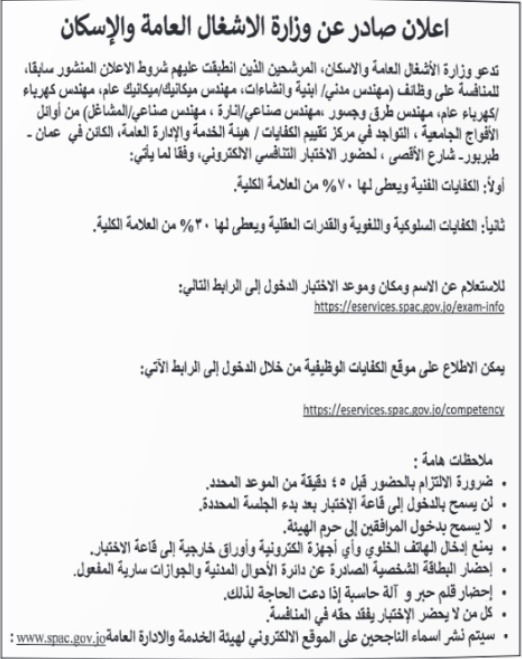 كما دعت دوائر حكومية المرشحين الذين انطبقت عليهم شروط الاعلان المنشور سابقا للامتحان التنافسي.