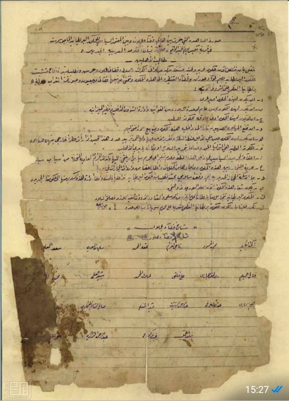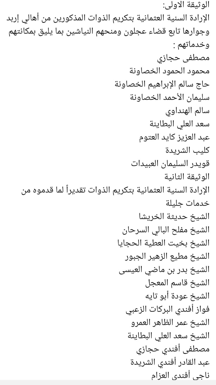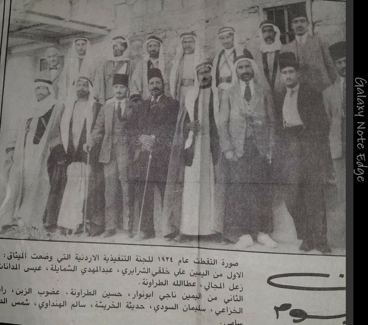 وقّع الوثيقة عددٌ من أبرز شيوخ ووجهاء الأردن، ممثلين عن عشائرهم ومجتمعاتهم، في أول تعبير جماعي منظّم عن الإرادة السياسية الأردنية. وكان في مقدمتهم علي خلقي باشا الشراري، وجدكم الأكبر سالم باشا الهنداوي، وناجي باشا العزام، وسليمان باشا السودي الروسان، وراشد باشا الخزاعي الفريحات وسعد العلي البطاينة ومحمد الحمود وعبد الرحمن ارشيدات وتركي كايد العبيدات ومحمود الفنيش النصيرات ومصطفى حجازي ونجيب فركوح وعودة القسوس وغيرهم من زعامات الوطن آنذاك. لم يوقّع هؤلاء بصفتهم الشخصية، بل بصفتهم أمناء على وعيٍ جمعيٍّ ناشئ، يعرف ما يريد، ويعرف ما يرفض، ولا يخشى التصريح بذلك.