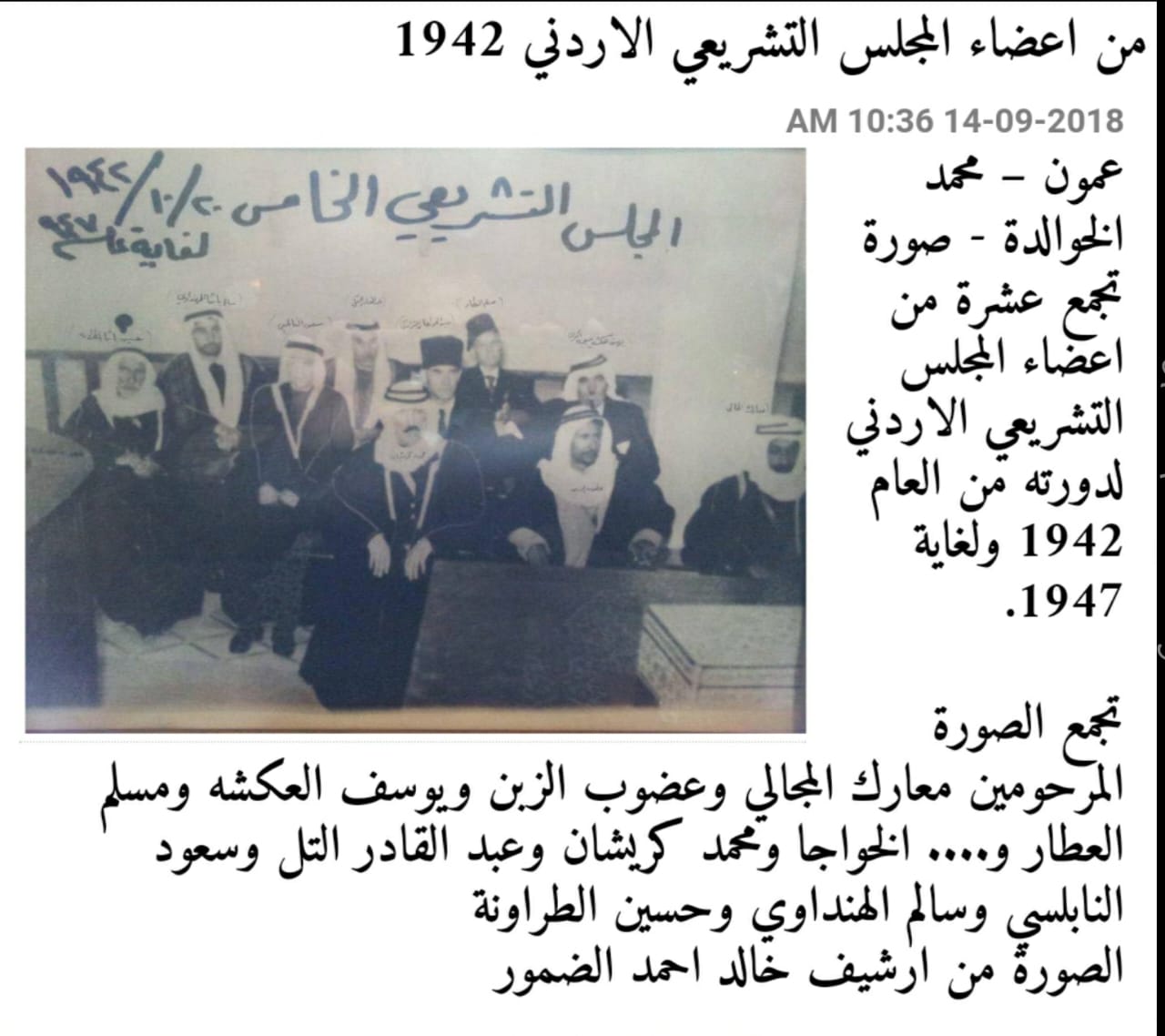 ولأن اللحظة كانت لحظة أمة، اختار المجلس التشريعي الخامس أربعةً من رجالاته، يمثّلون أقاليم الوطن ليرفعوا قرار الأمة إلى القائد المؤسس، ويبايعونه نيابةً عن الشعب الأردني كله. فكانوا: ماجد باشا العدوان ممثلًا عن لواء البلقاء، ومعارك باشا المجالي ممثلًا عن لواء الكرك، وجدكم الأكبر سالم باشا الهنداوي ممثلًا عن لواء عجلون وحمد باشا الجازي ممثلًا عن لواء معان/ البادية. هؤلاء لم يكونوا مجرد أسماء في محضر جلسة، بل خلاصة مسار طويل من النضال العشائري والوطني، حملوا قرار الشعب وسلّموه إلى الأمير الملك عبد الله بن الحسين، وبايعوه عليها، نيابة عن الشعب، ملكا على المملكة الوليدة بلقب" حضرة صاحب الجلالة الهاشمية"، الملك المؤسس، ليبدأ عهد الدولة المستقلة، الدولة التي صُنعت قبل أن تُعلَن، وتشكّلت في الوعي قبل أن تُرسَّم على الورق.