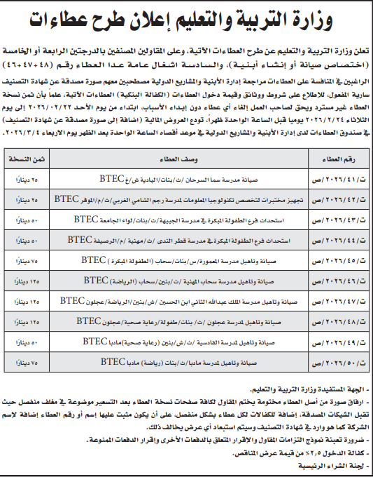 عطاء صيانة ابنية مدرسية