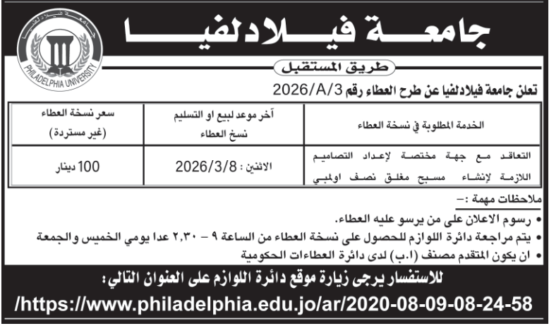 عطاء صادر عن جامعة فيلادلفيا