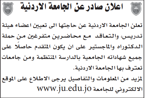 الجامعة الاردنية بحاجة لتعيين أعضاء هيئة تدريسية