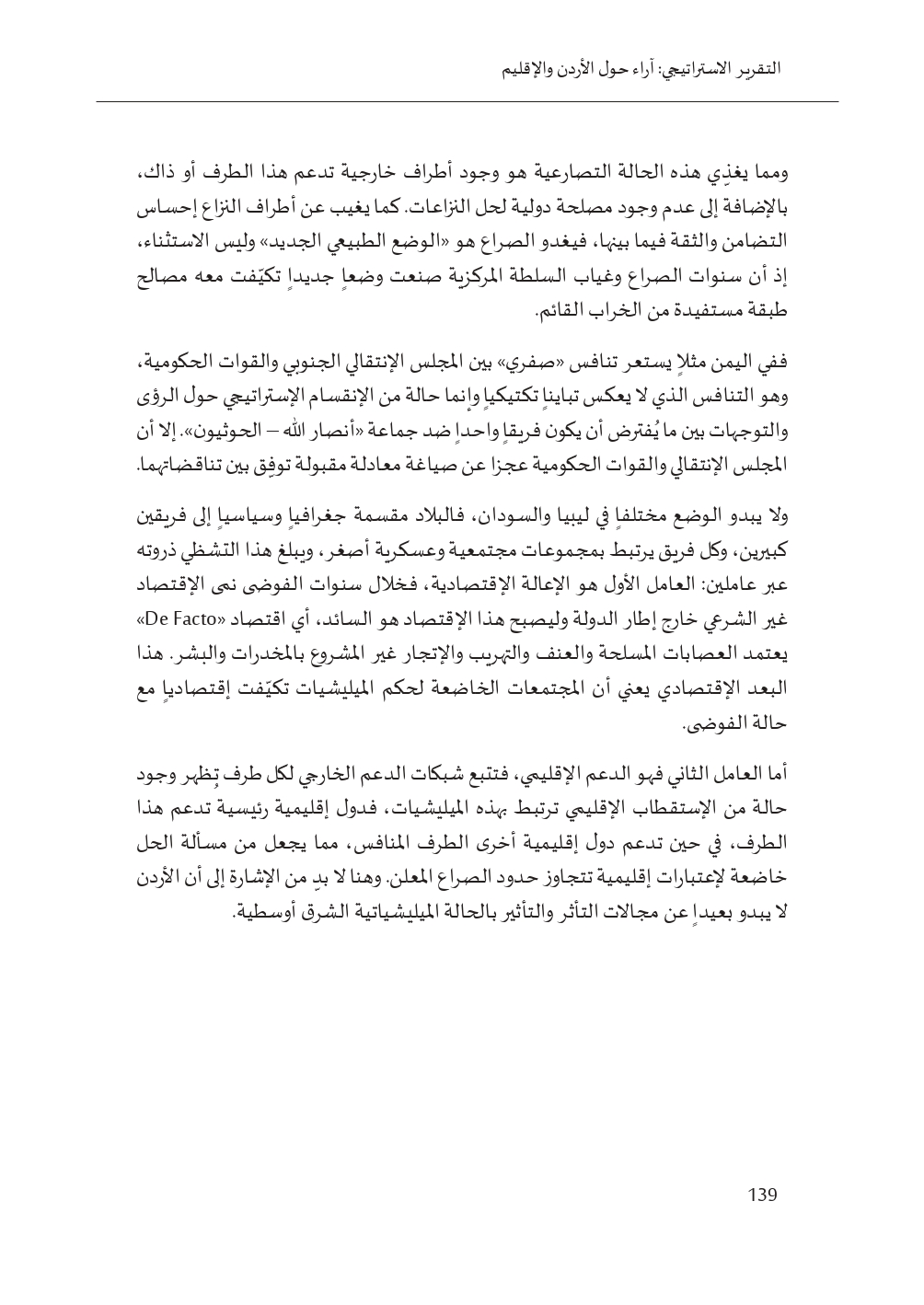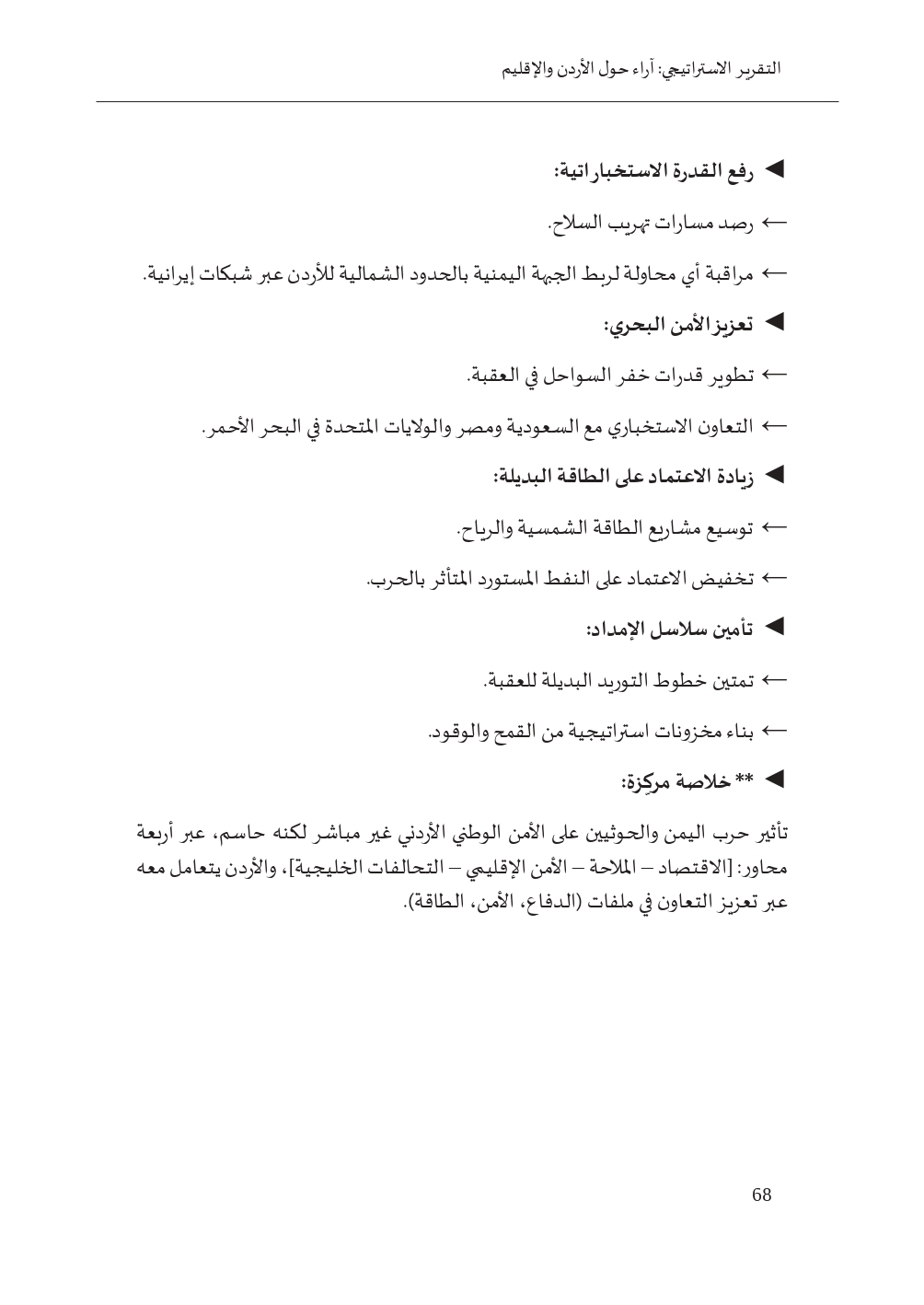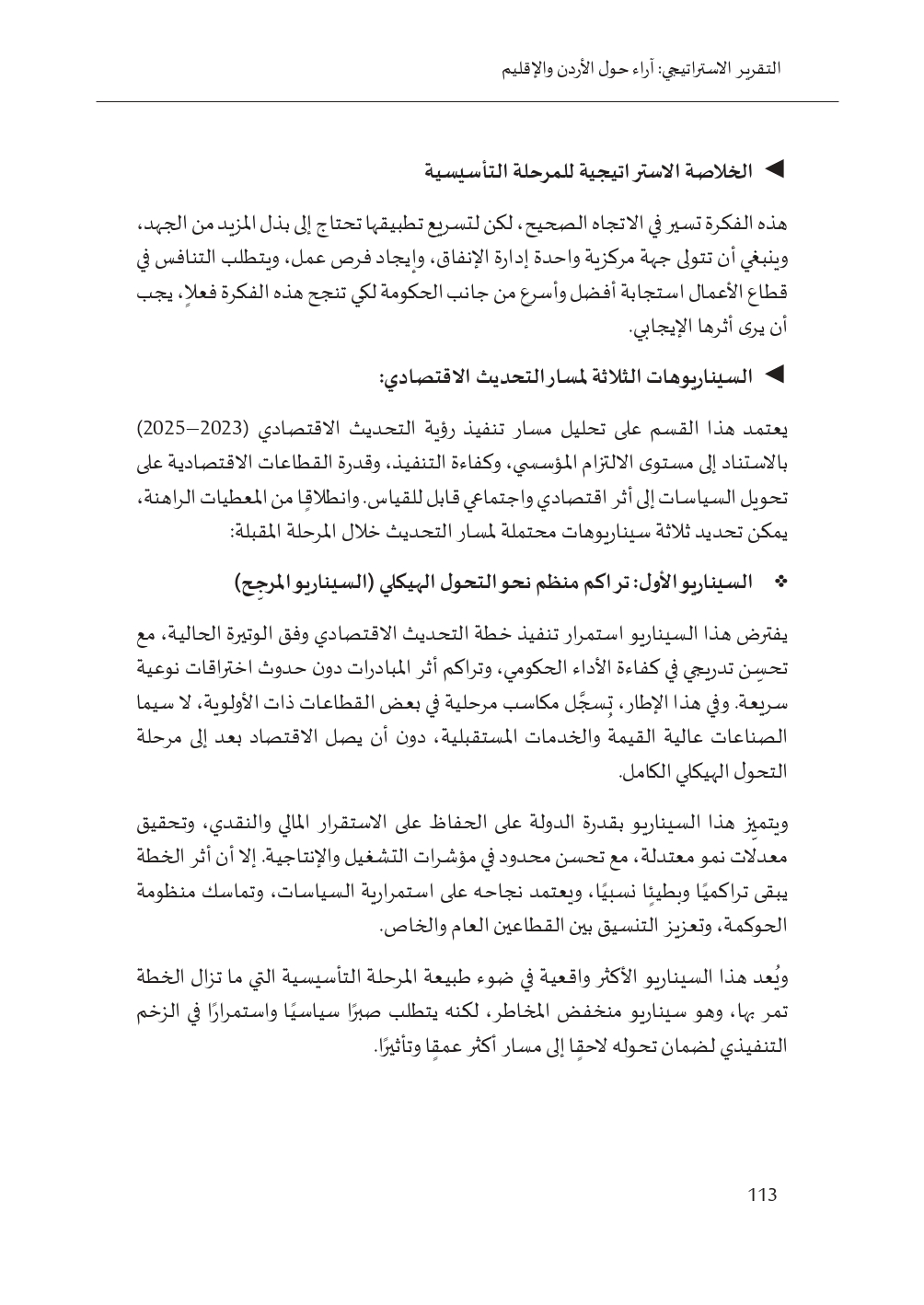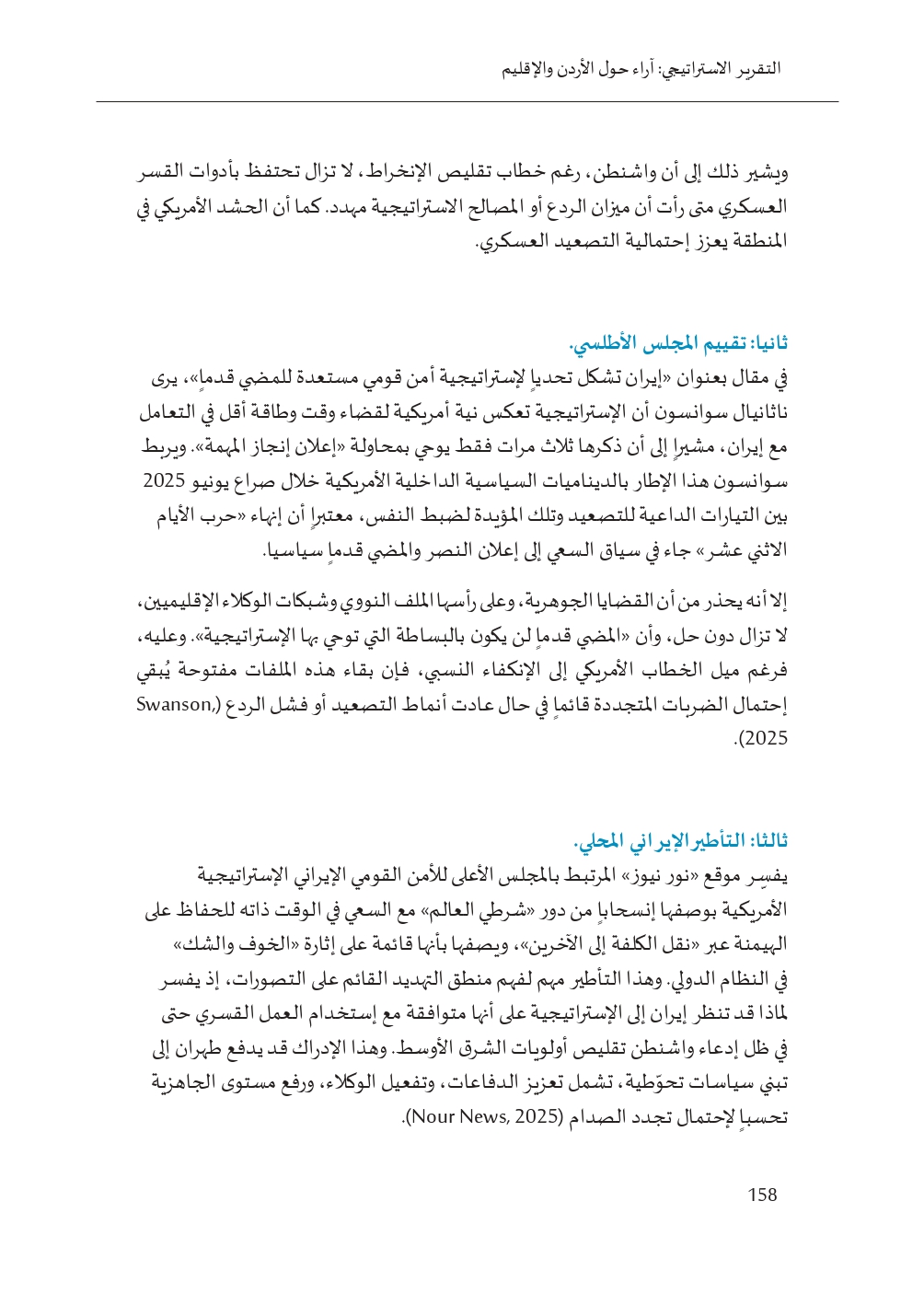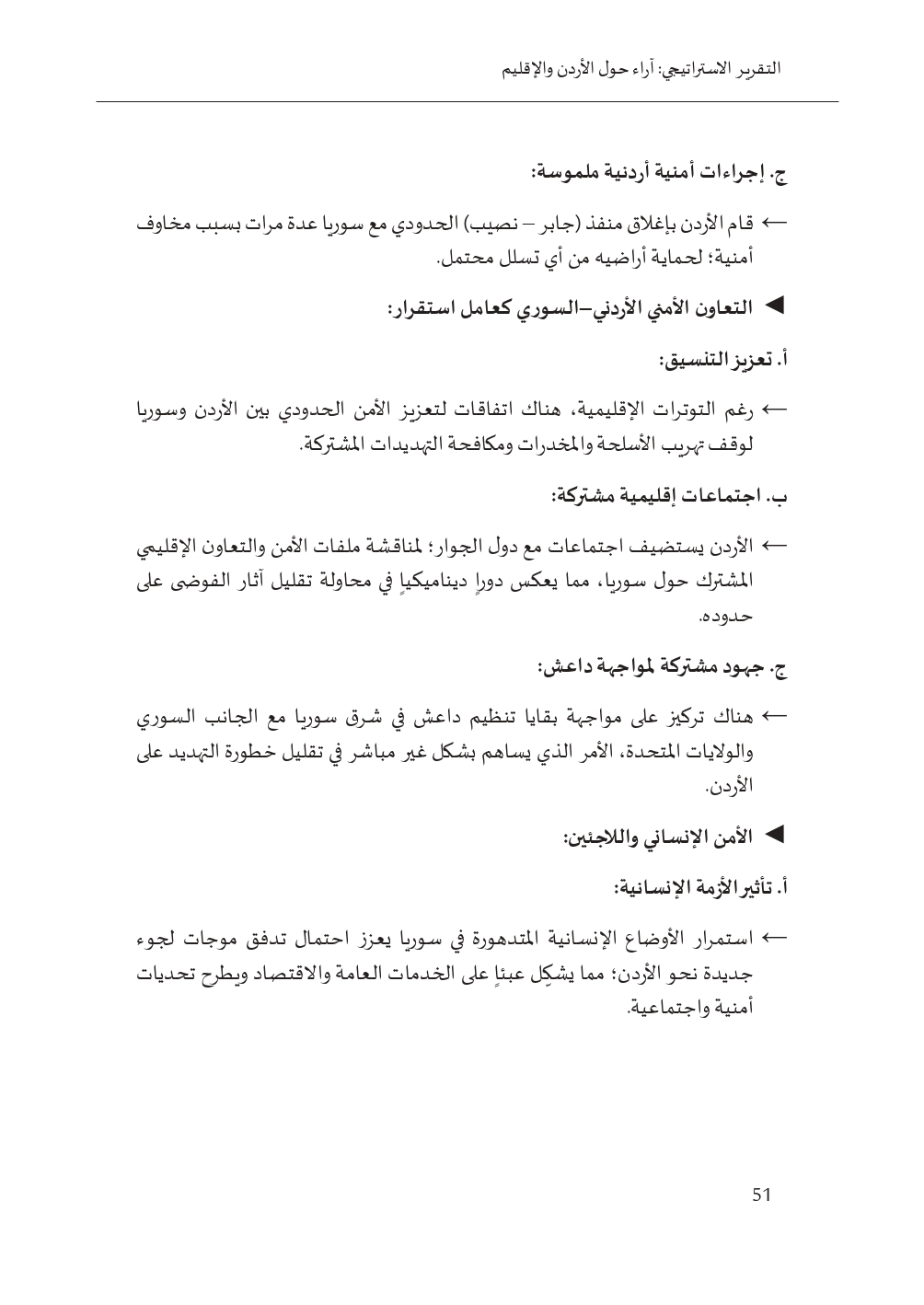 وينطلق التقرير من مقاربة تحليلية منهجية تقوم على استشراف السيناريوهات وتقدير المخاطر، ومواءمتها مع مرتكزات استراتيجية الأمن الوطني الأردني، وصولًا إلى بلورة مجموعة من المقترحات والتوصيات العملية القابلة للتنفيذ، بما يعزز قدرة صانع القرار على التعامل مع التحولات المتسارعة في الإقليم والعالم.