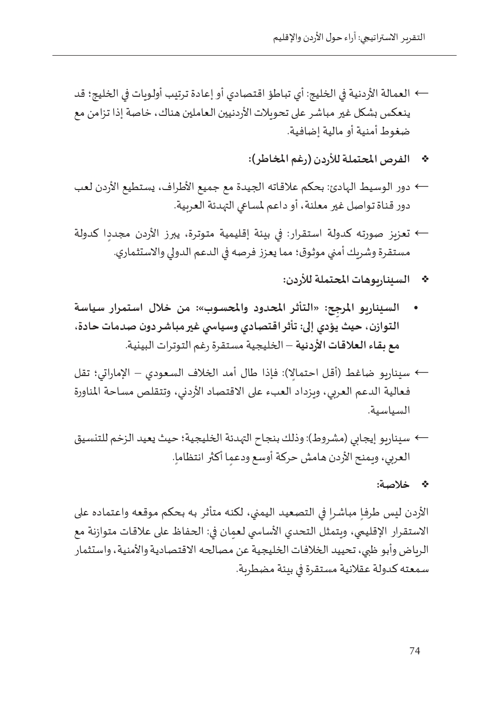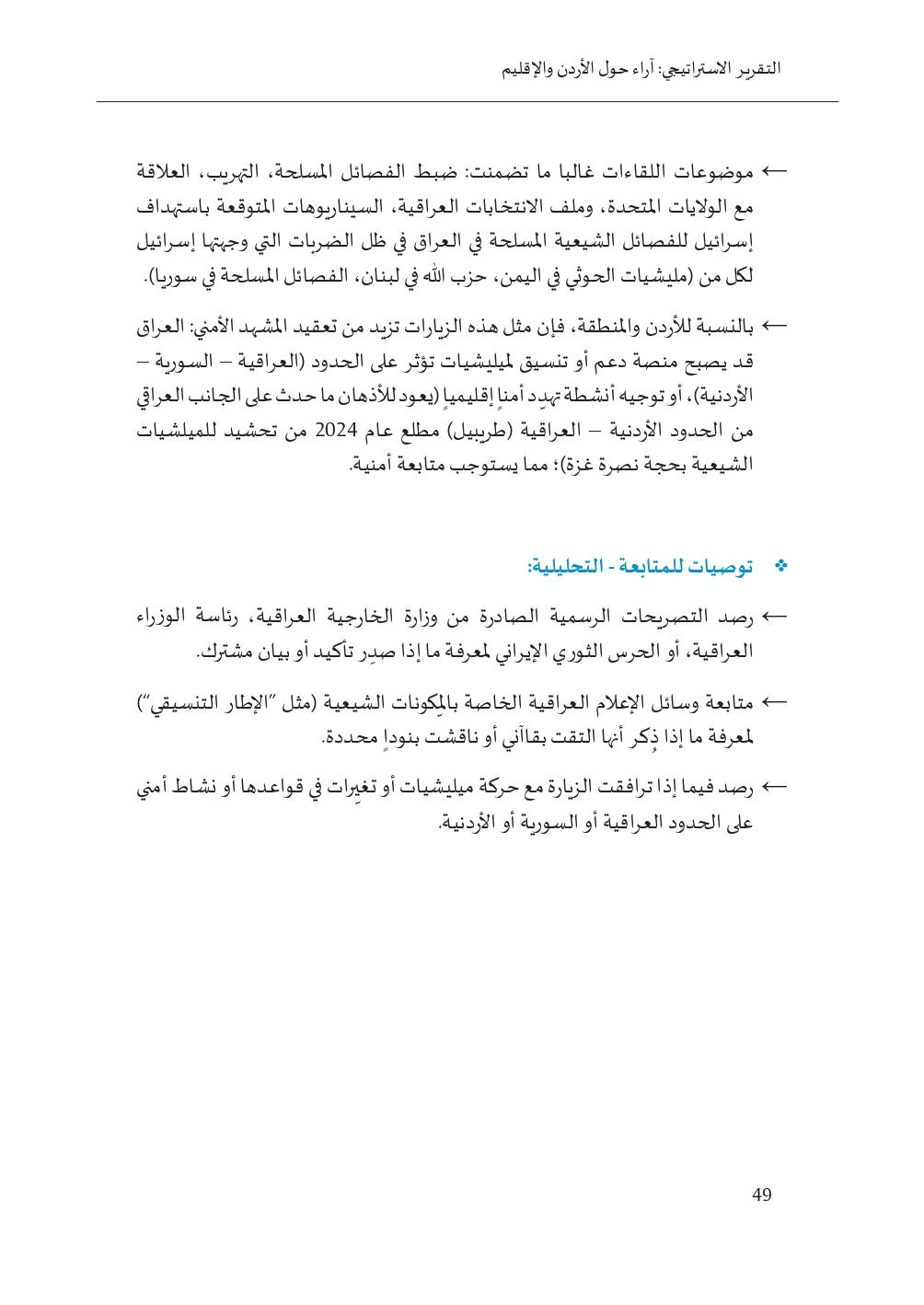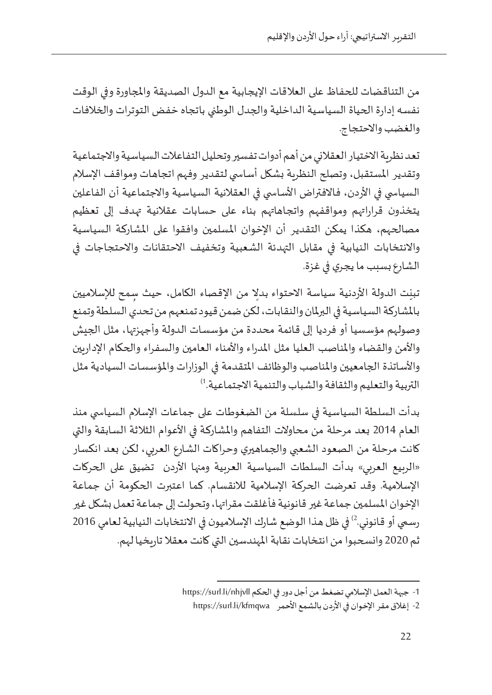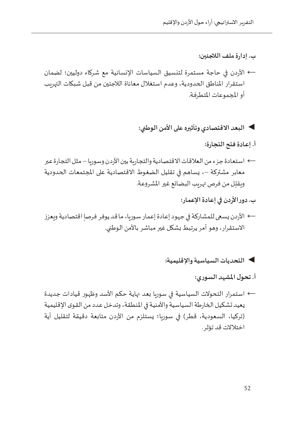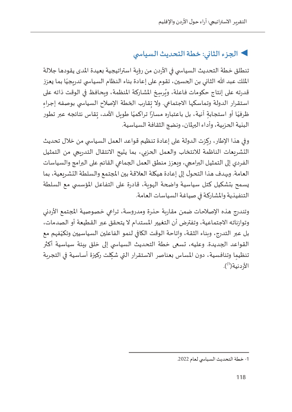 وينطلق التقرير من مقاربة تحليلية منهجية تقوم على استشراف السيناريوهات وتقدير المخاطر، ومواءمتها مع مرتكزات استراتيجية الأمن الوطني الأردني، وصولًا إلى بلورة مجموعة من المقترحات والتوصيات العملية القابلة للتنفيذ، بما يعزز قدرة صانع القرار على التعامل مع التحولات المتسارعة في الإقليم والعالم.