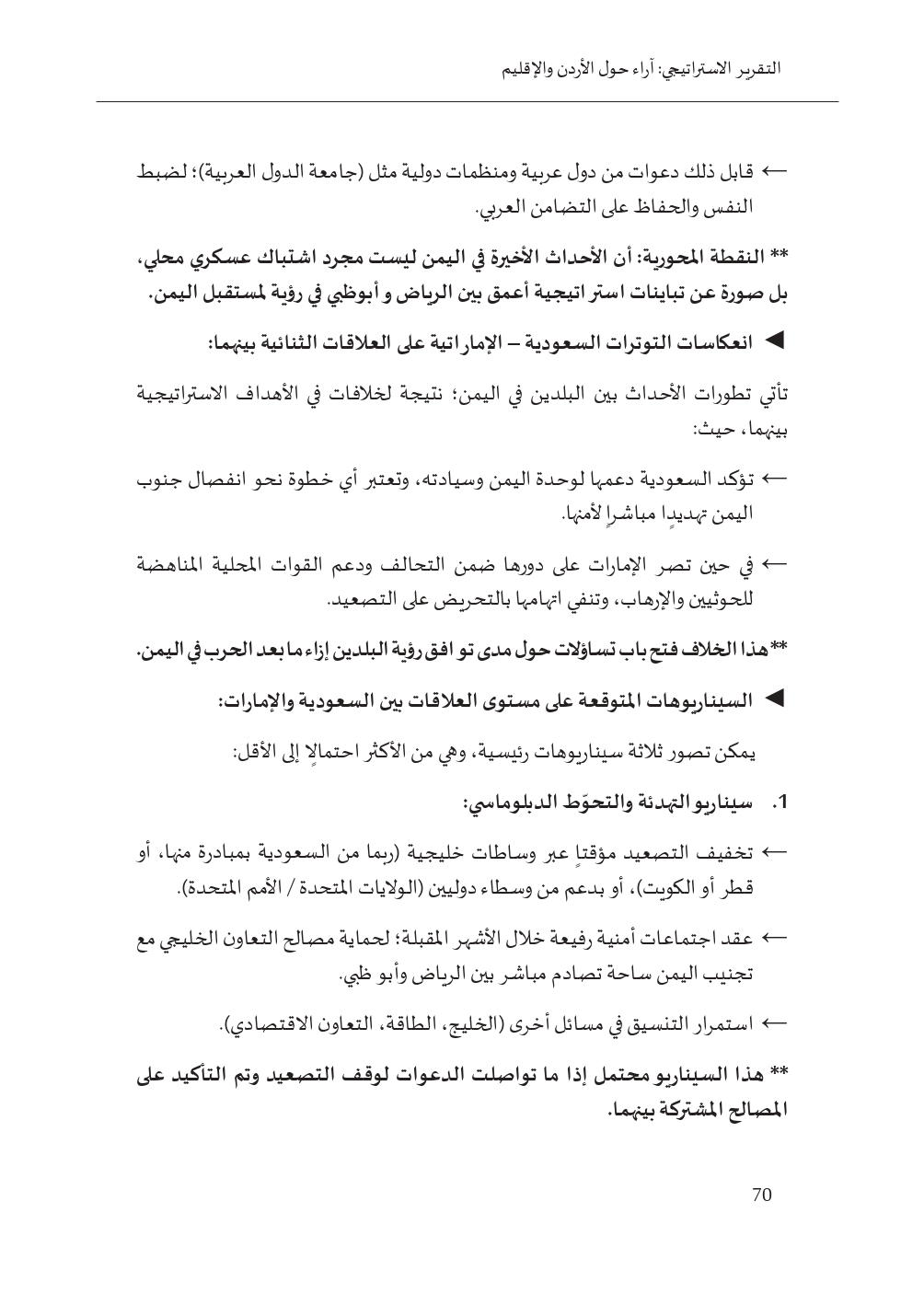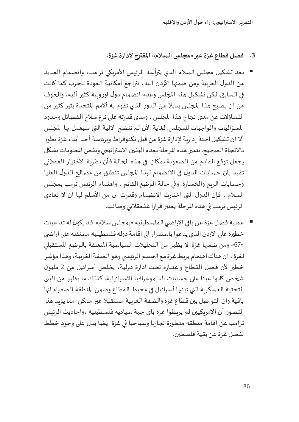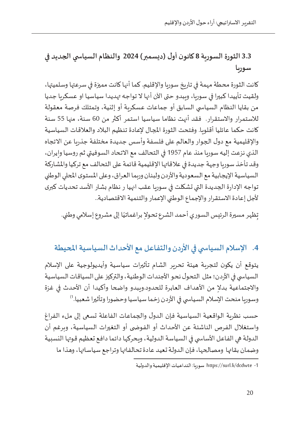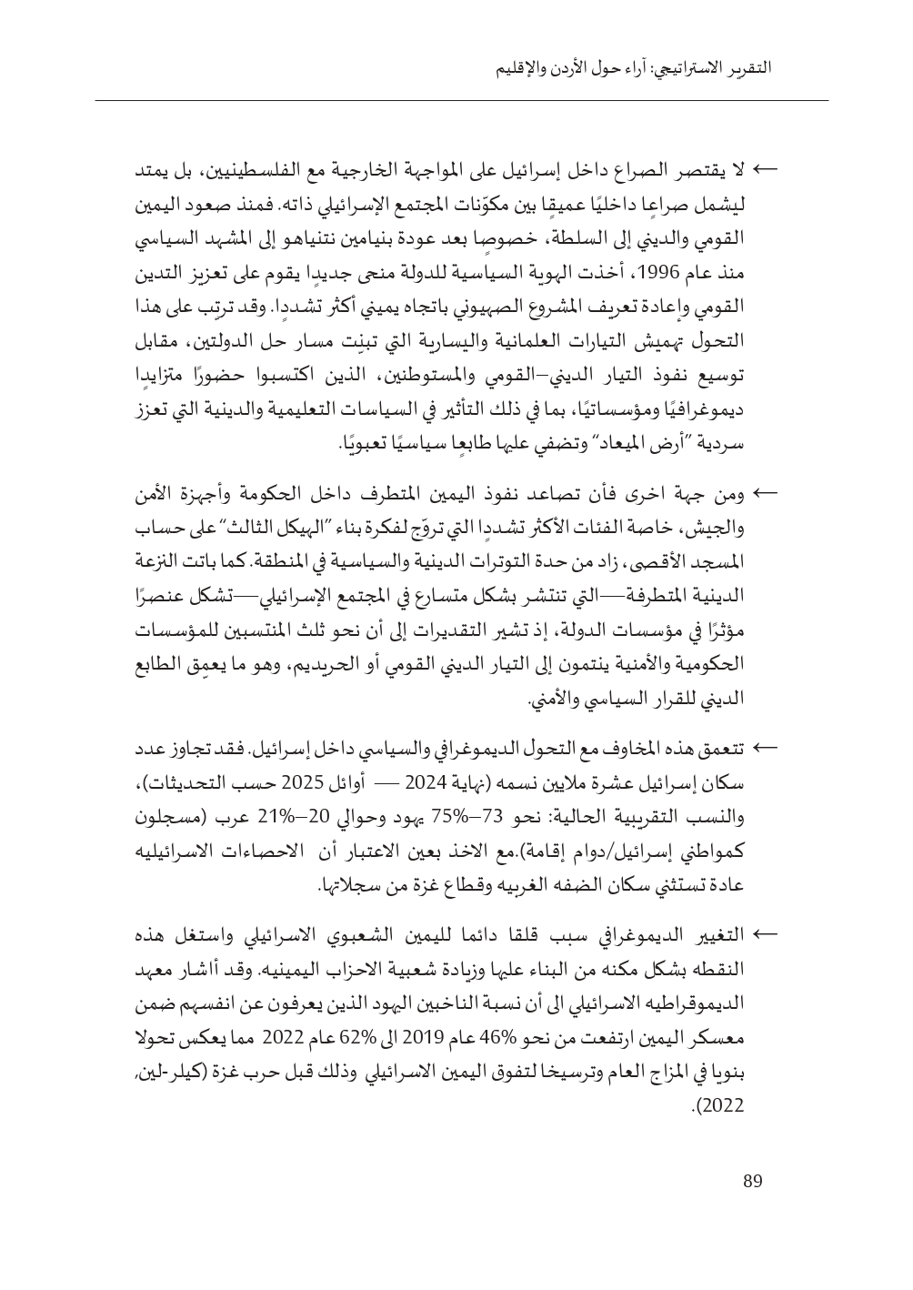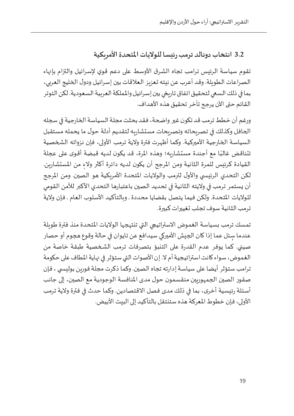 وينطلق التقرير من مقاربة تحليلية منهجية تقوم على استشراف السيناريوهات وتقدير المخاطر، ومواءمتها مع مرتكزات استراتيجية الأمن الوطني الأردني، وصولًا إلى بلورة مجموعة من المقترحات والتوصيات العملية القابلة للتنفيذ، بما يعزز قدرة صانع القرار على التعامل مع التحولات المتسارعة في الإقليم والعالم.