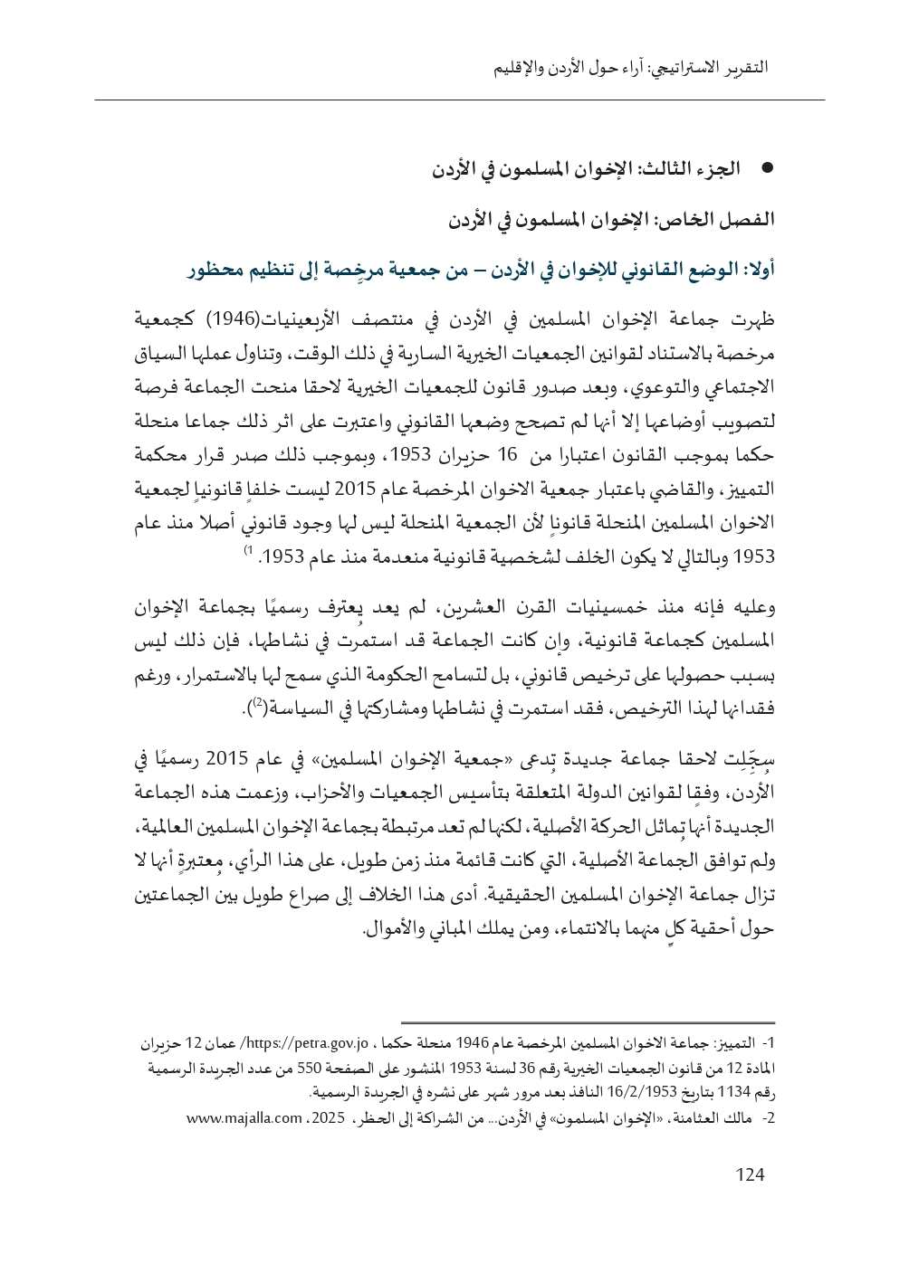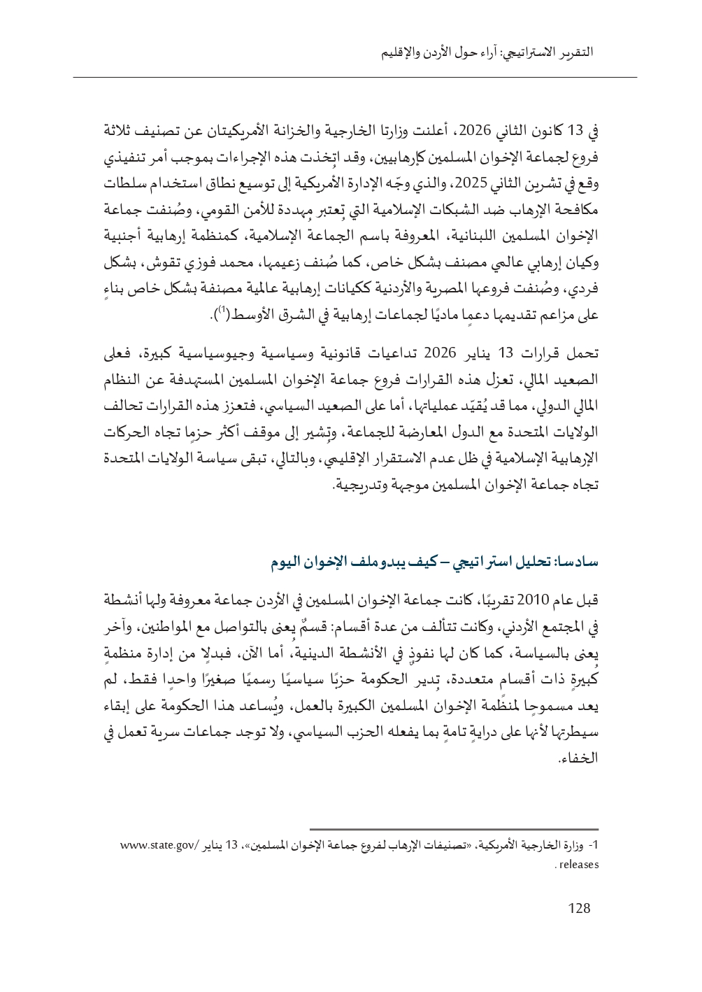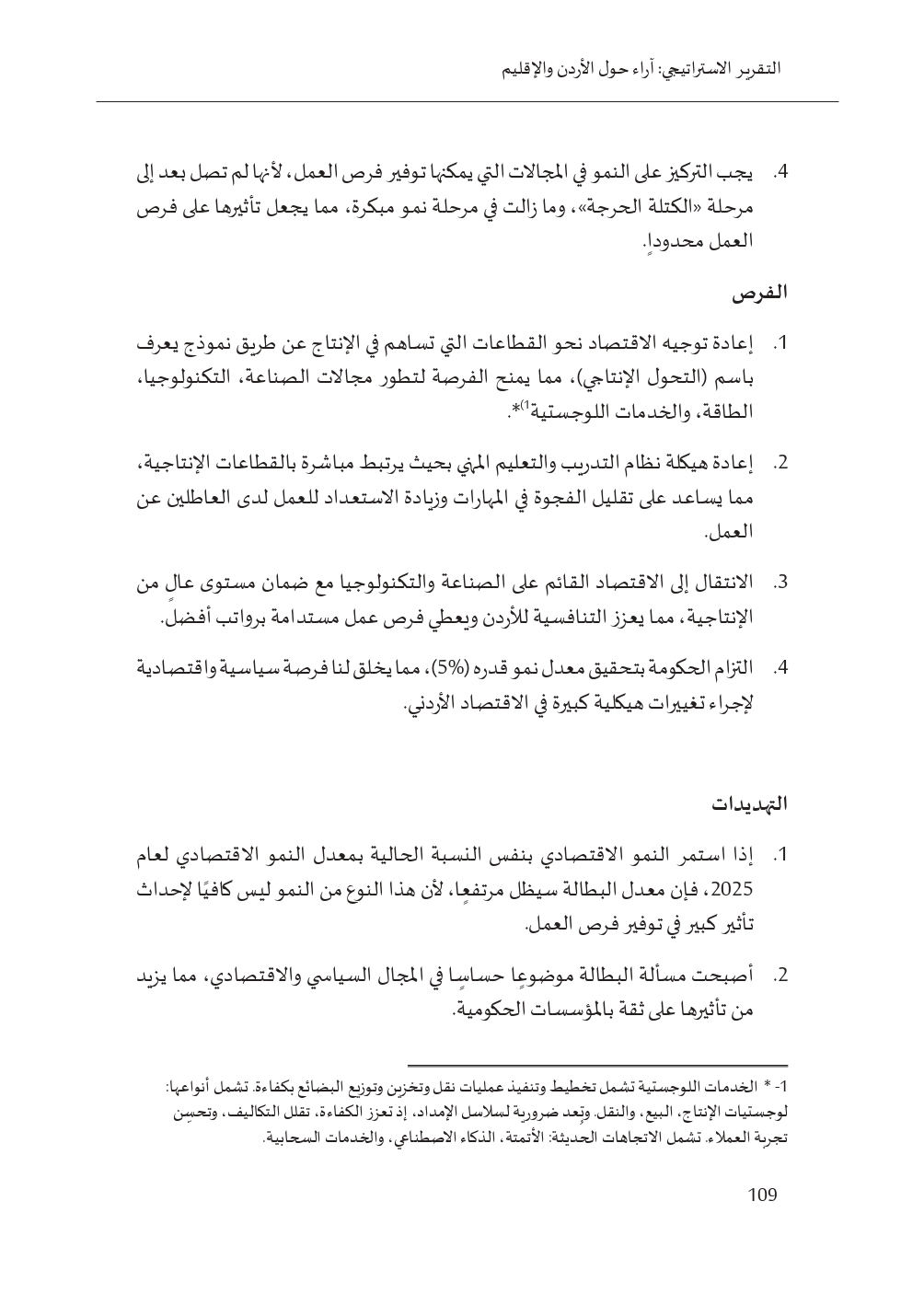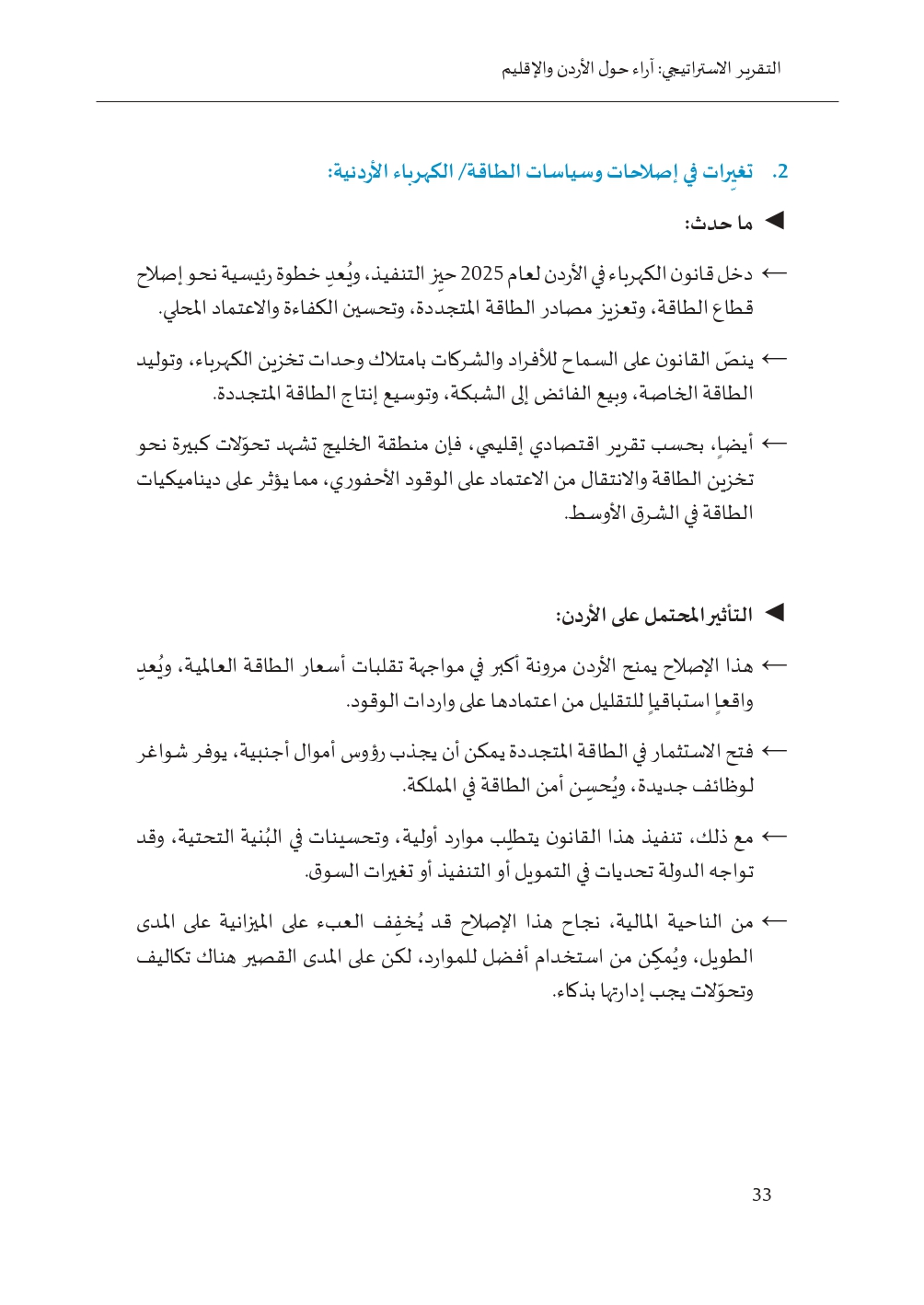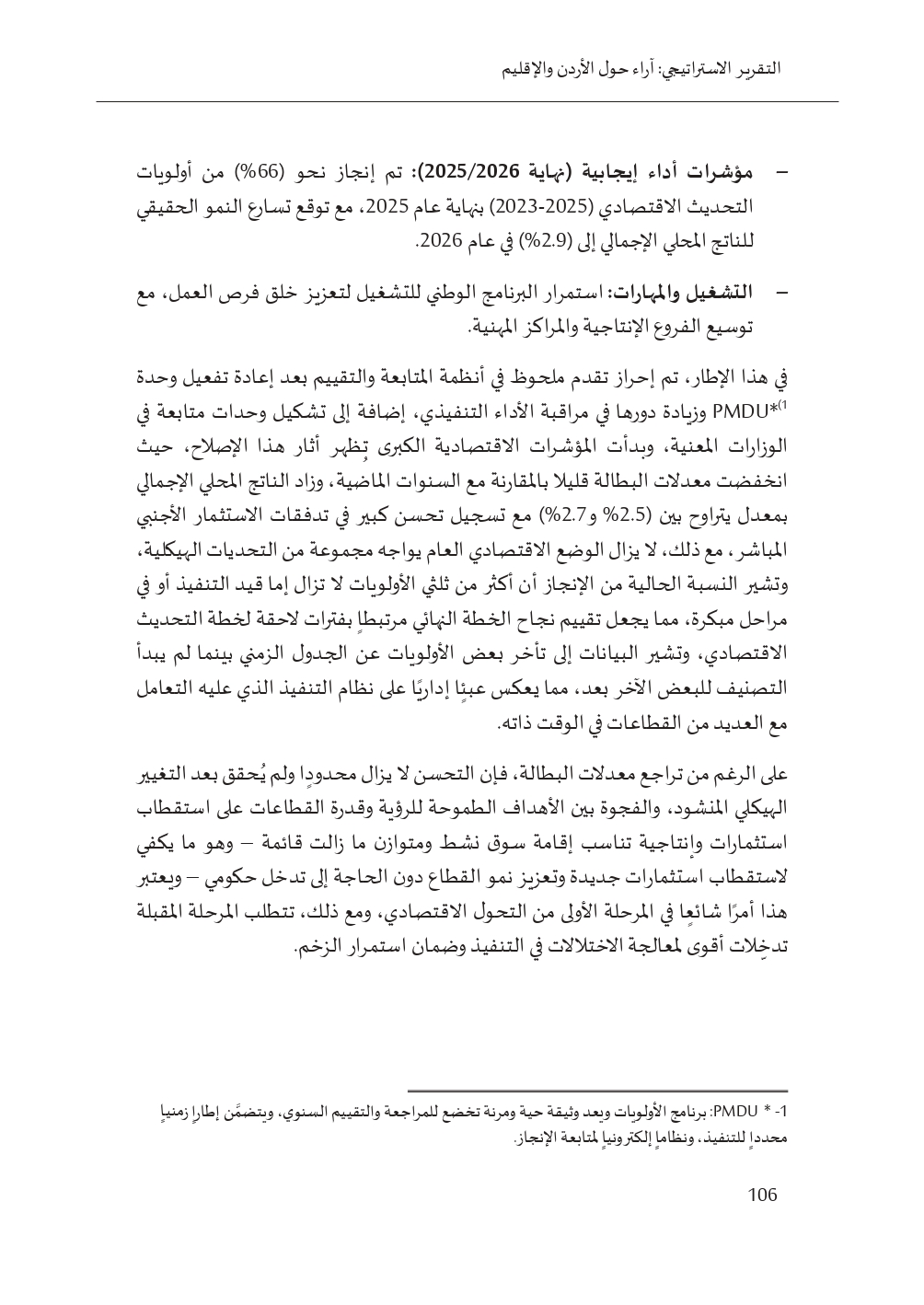 ويستند التقرير إلى تحليلات قائمة على الأدلة، تهدف إلى استشراف الاتجاهات المستقبلية وصياغة استجابات فعّالة للتحديات المتغيّرة. كما يقدّم قراءة تحليلية للتطورات السياسية والأمنية والاقتصادية والاجتماعية التي شهدها عام 2025 على المستويات المحلية والإقليمية والدولية، مع تسليط الضوء على انعكاساتها المحتملة على الأردن.