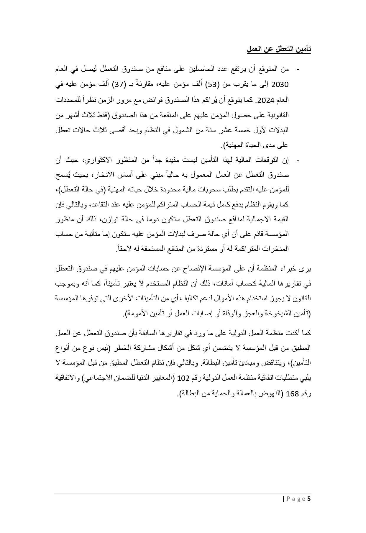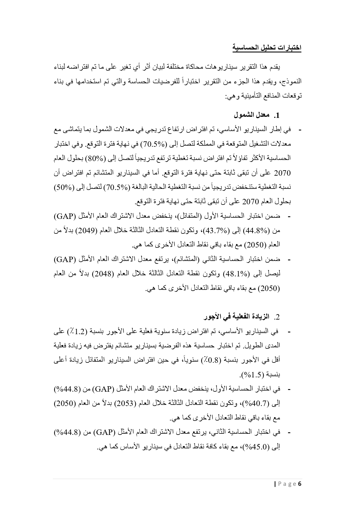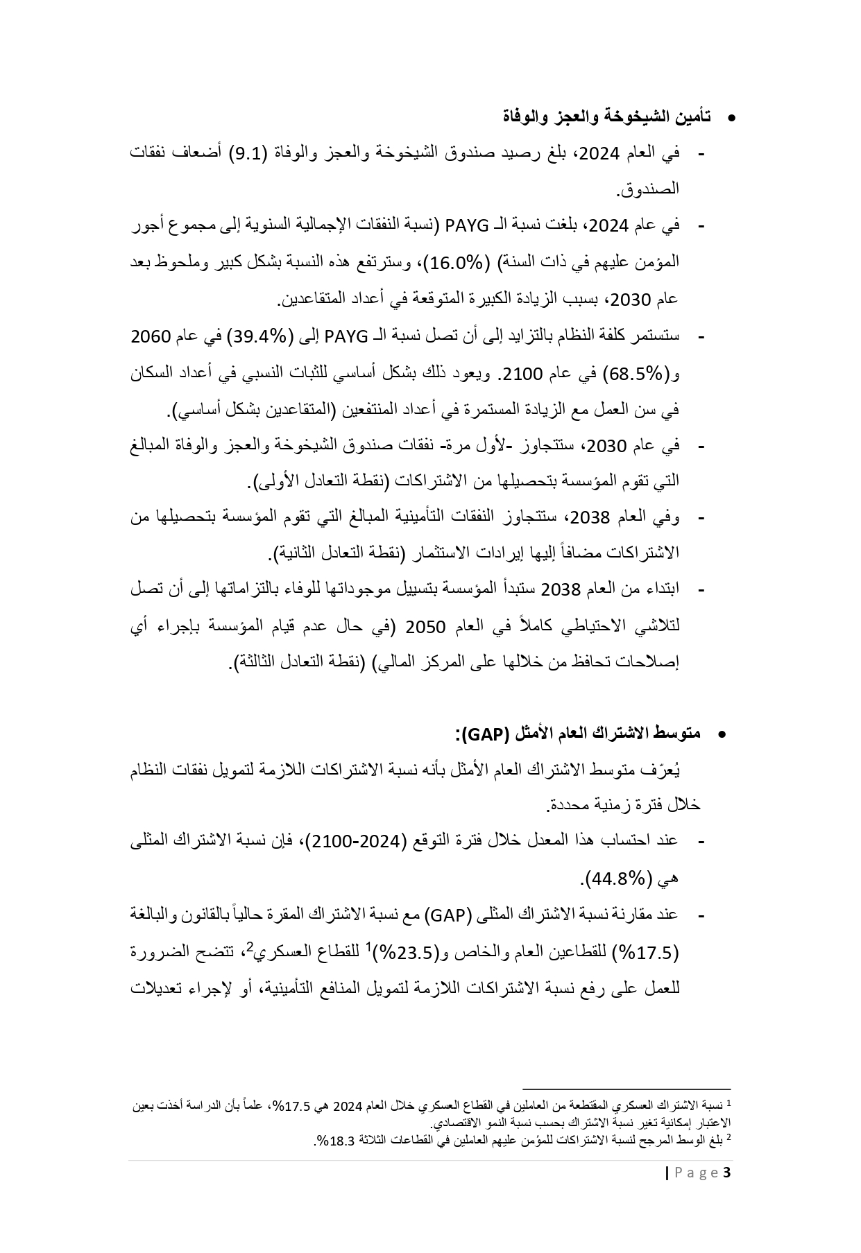 وبيّنت المؤسسة أن الدراسة الاكتوارية أظهرت أن نقطة التعادل الأولى ستكون في عام 2030، حيث تتساوى الإيرادات التأمينية المباشرة من الاشتراكات مع النفقات التأمينية، مشيرةً إلى أن ابتعاد نقطة التعادل الأولى زمنيًا يُعدّ مؤشرًا إيجابيًا على الاستقرار والاستدامة الأفضل للوضع المالي للمؤسسة.