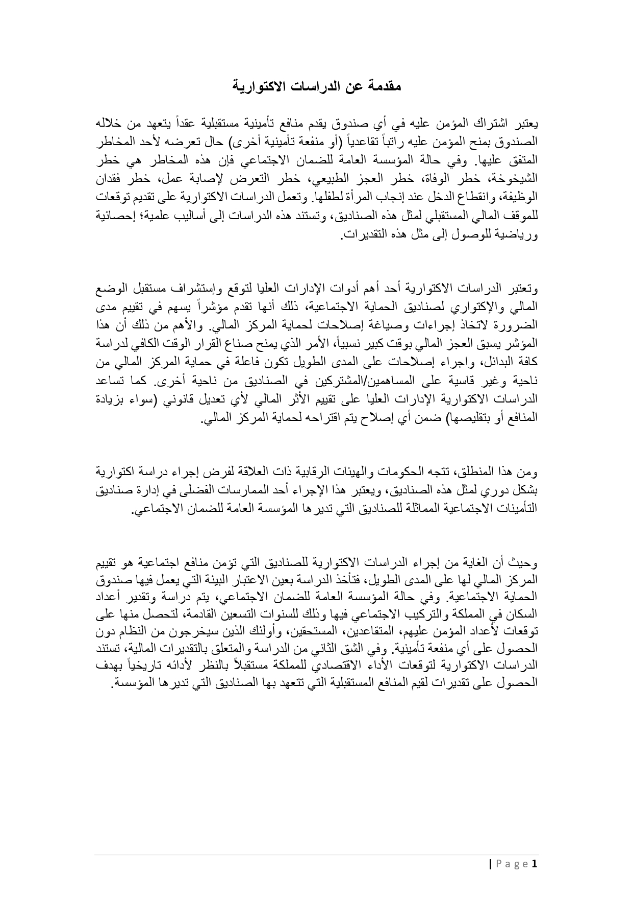 وتهدف إلى تقييم المركز المالي للمؤسسة واستمرار استدامتها التأمينية على المدى الطويل، باعتبارها من أهم الأدوات التحليلية لتوقّع واستشراف مستقبل الوضع المالي والاكتواري لصناديق الحماية الاجتماعية.