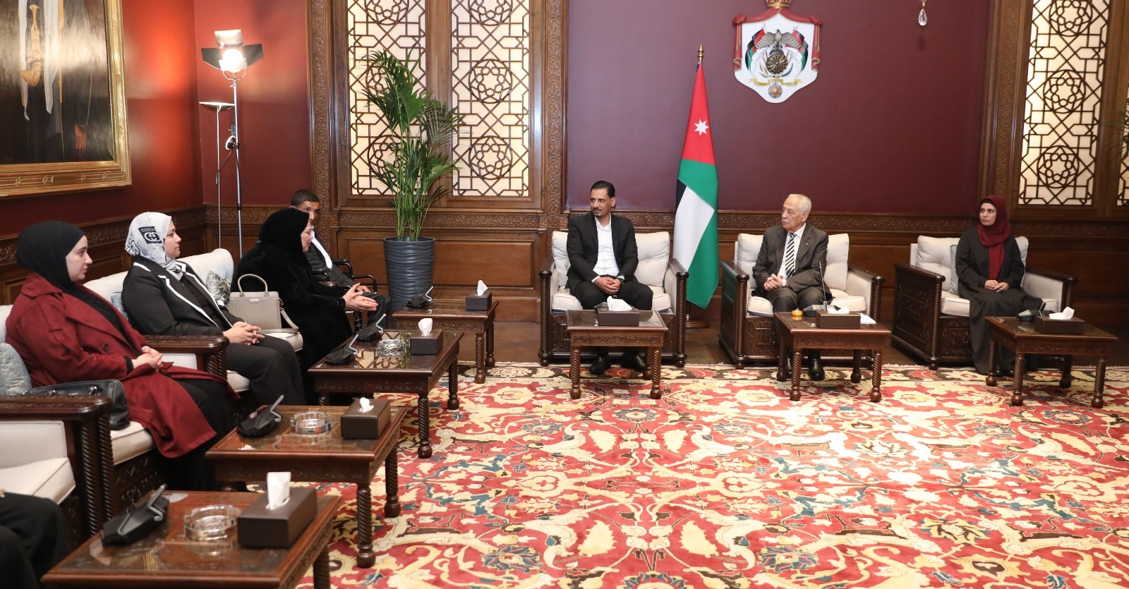 عمون - التقى رئيس الديوان الملكي الهاشمي يوسف حسن العيسوي، اليوم الخميس، وفداً شبابياً يمثل جمعية أهل الجبل للتنمية البشرية، في الديوان الملكي الهاشمي.