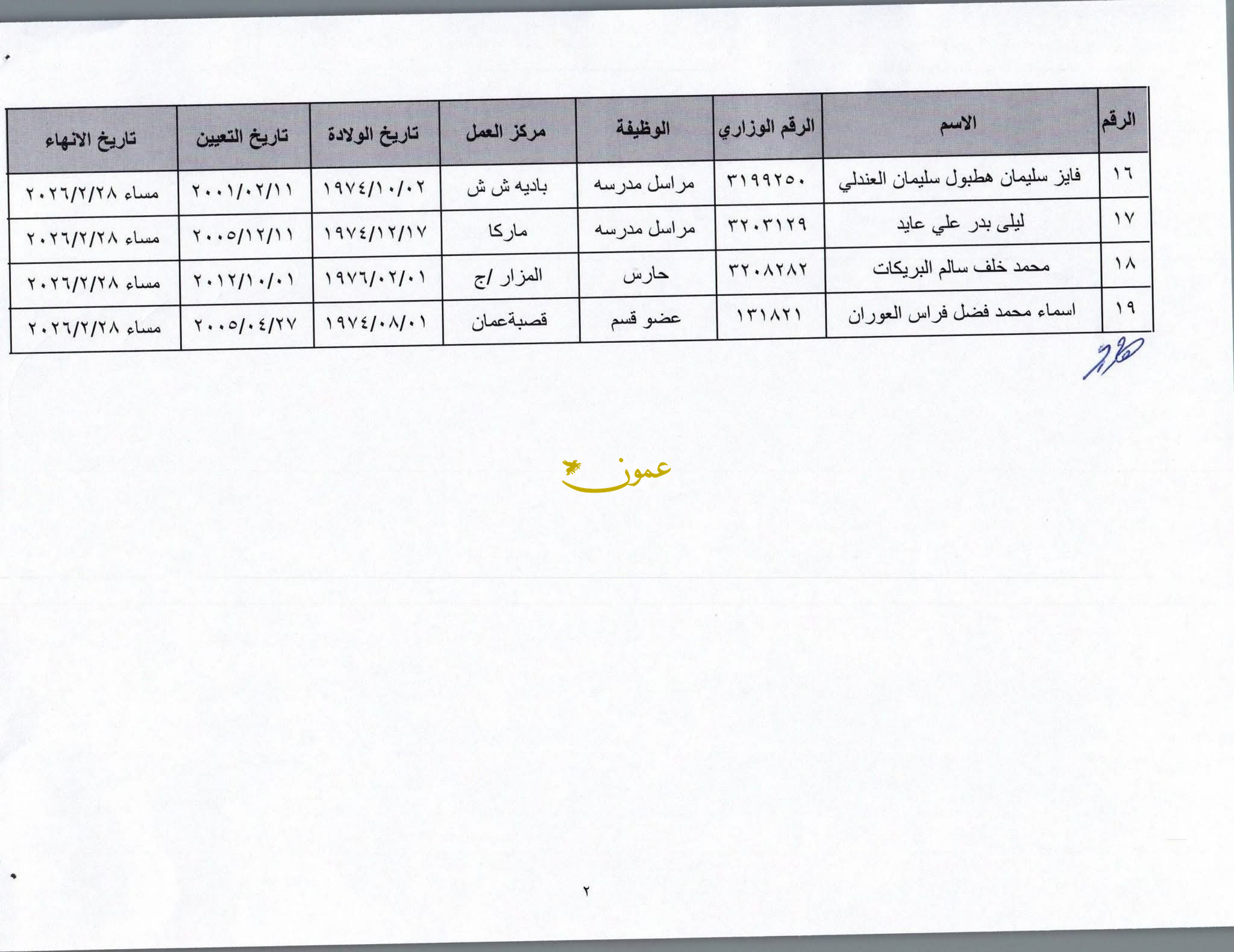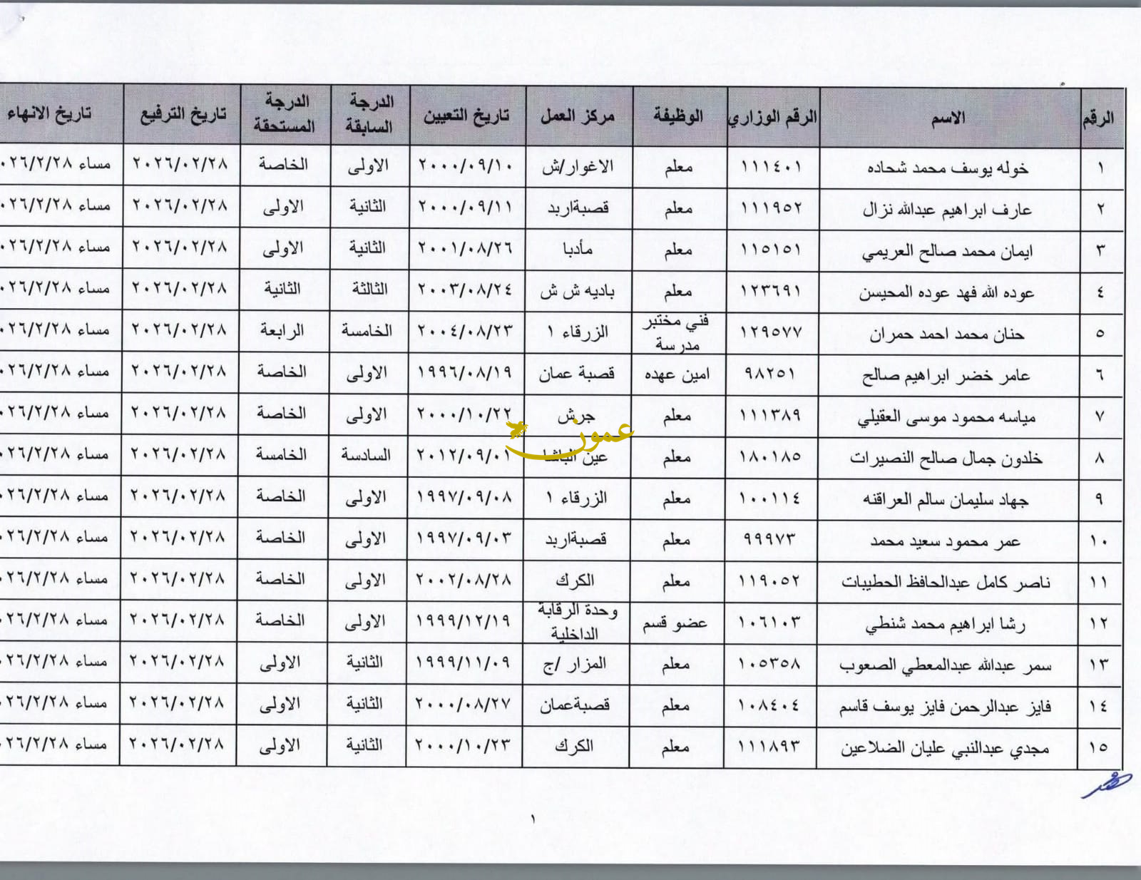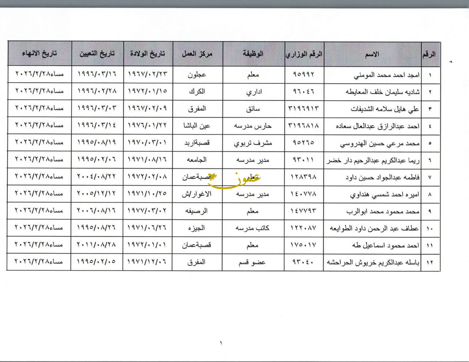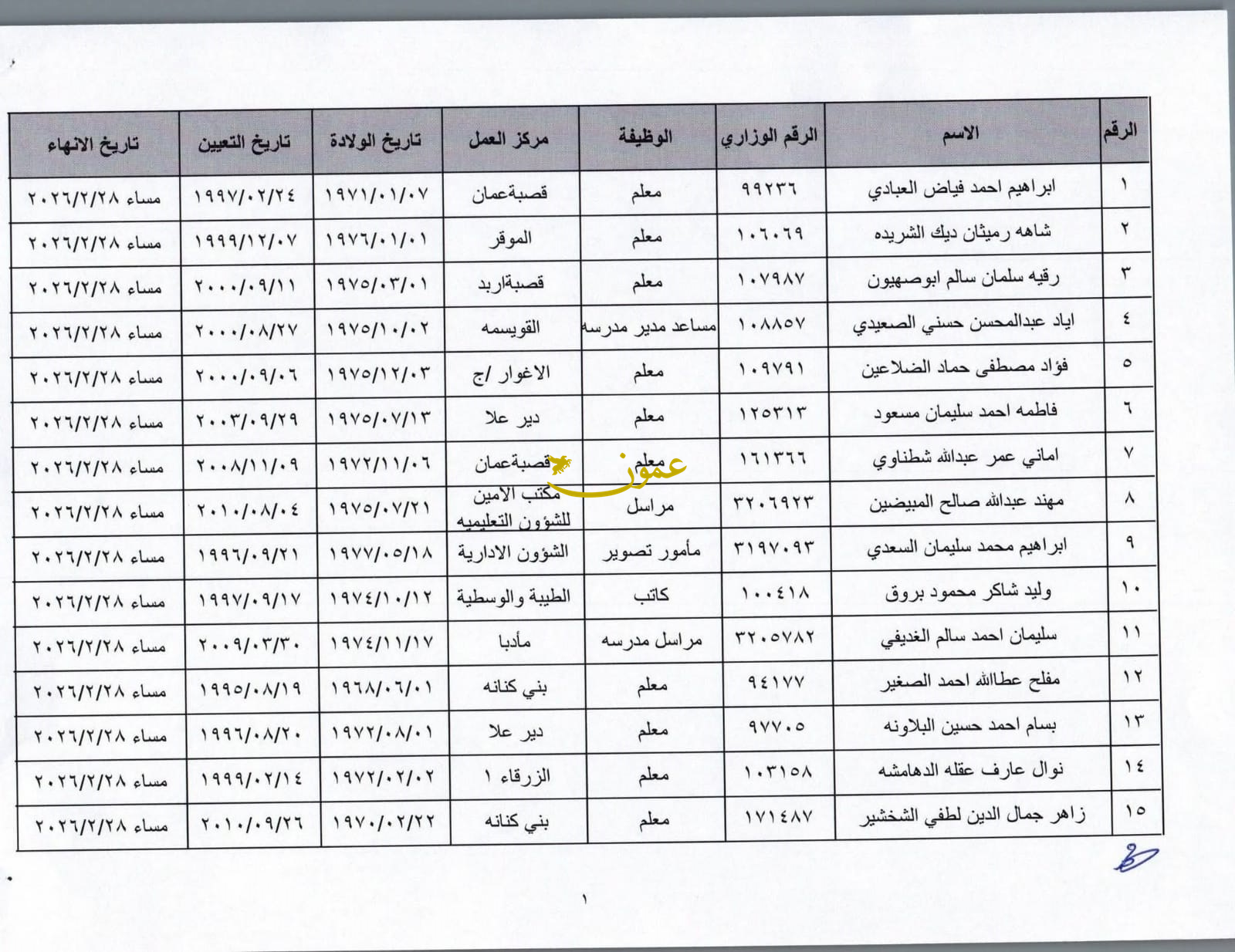 إنهاء خدمات موظفين في التربية لاستكمالهم التقاعد المبكر (اسماء)28-02-2026 08:29 PM