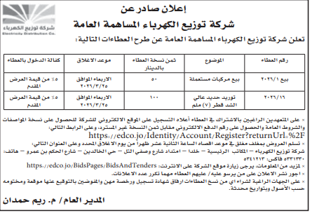 عطاءات صادرة عن شركة توزيع الكهرباء