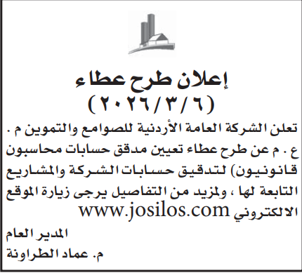عطاء صادر عن الشركة العامة للصوامع والتموين