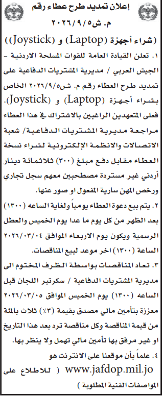 عطاء صادر عن القيادة العامة للقوات المسلحة الاردنية