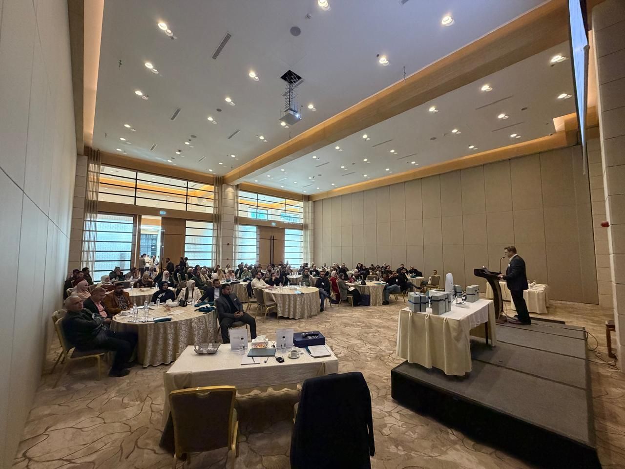 وركّزت الورشة على استعراض أحدث تقنيات الطرد المركزي المبتكرة والحلول المخبرية العملية وتطبيقاتها المتقدمة في المجالات الطبية والمخبرية، وذلك بمشاركة نحو (90) مختصًا ومهتمًا، حيث تميّزت جلساتها بمستوى عالٍ من التفاعل والنقاش العلمي البنّاء، مدعومًا بأسئلة نوعية وتغذية راجعة قيّمة من الحضور، مما يعكس أهمية الموضوع المطروح وارتباطه بالتطبيقات المخبرية الحديثة، وتضمّنت الورشة محاور علمية وتطبيقية متكاملة شملت التعريف بالمفاهيم والمصطلحات الأساسية المرتبطة بتقنيات الطرد المركزي، إلى جانب تقديم عرض شامل لمنتجات شركة (Hettich GmbH)، واستعراض الأجهزة المتخصصة وتطبيقاتها المختلفة، إضافة إلى جزء عملي أتاح للمشاركين فرصة التفاعل المباشر مع الأجهزة والتعرّف على آليات تشغيلها واستخدامها وفق أفضل الممارسات المهنية المعتمدة، كما شهدت الورشة مشاركة السيد Dmitry Gusev مدير المبيعات الإقليمي الأول في الشركة، الذي أسهمت خبراته المتخصصة في إثراء المحتوى العلمي وتعزيز الحوار التفاعلي من خلال تقديم إجابات وافية على استفسارات المشاركين، بما عزّز من القيمة العلمية والتطبيقية لمخرجات الورشة.