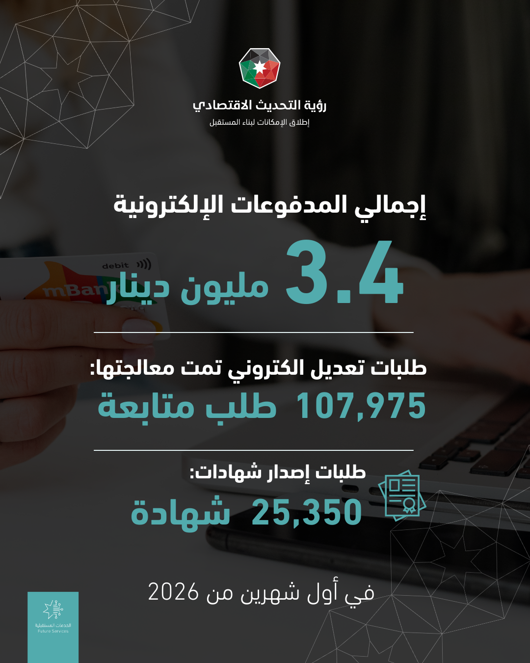 عمون - ارتفع عدد الشركات المسجلة في المملكة، في أول شهرين من العام الحالي، بنسبة 35 بالمئة، مقارنة مع الفترة نفسها من عام 2019، و0.6 بالمئة عن نفس الفترة من 2025.