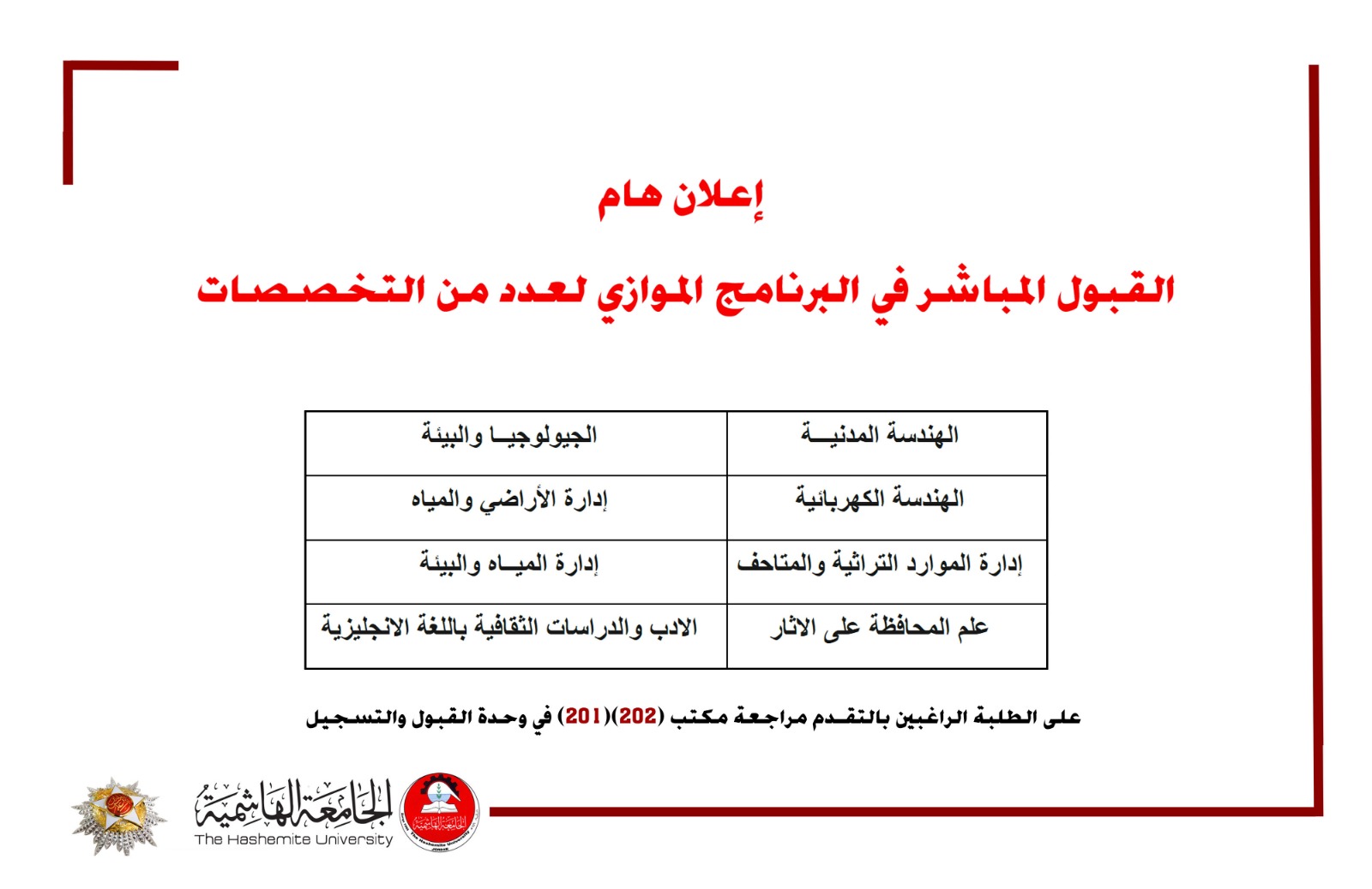 الهاشمية تتيح القبول المباشر في البرنامج الموازي لعدد من التخصصات04-03-2026 02:28 PM
