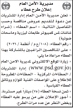 عطاء صادر عن مديرية الامن العام
