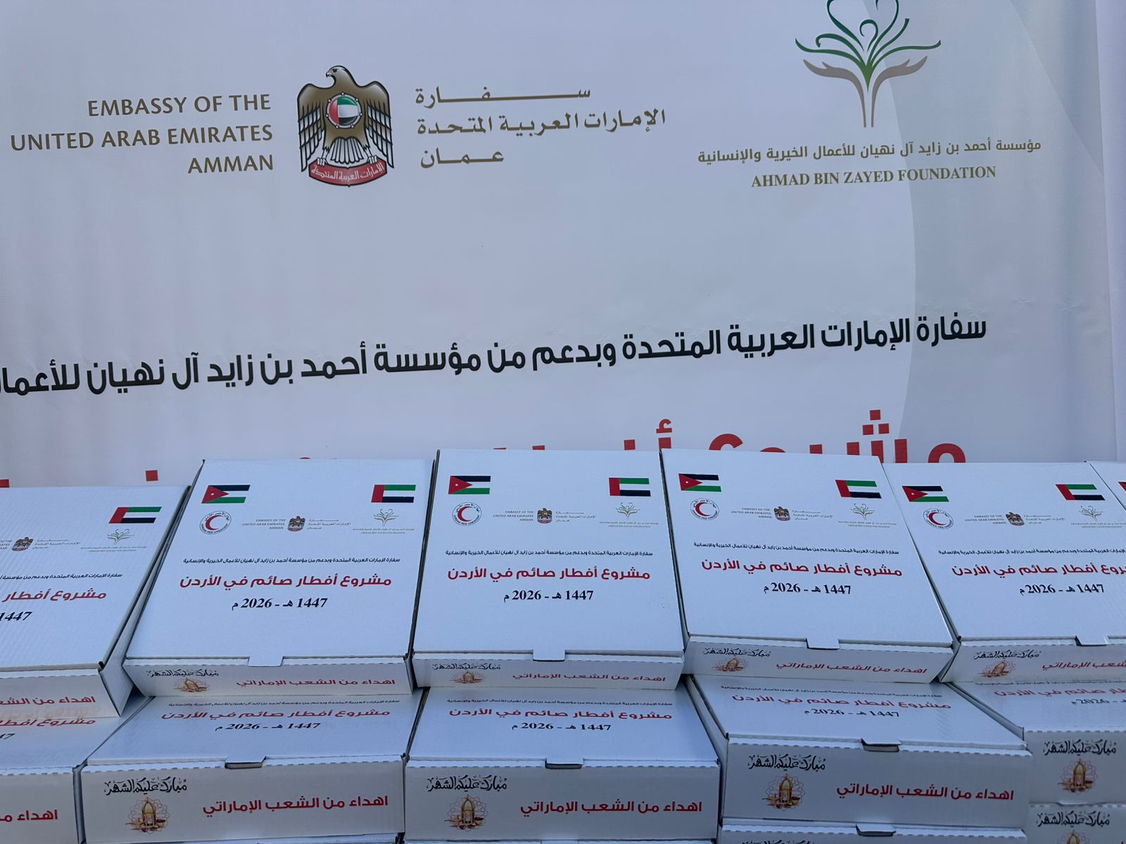 عمون - نظمت سفارة دولة الإمارات العربية المتحدة في عمّان، عددا من المبادرات والمشاريع الخيرية في شهر رمضان المبارك لعام ١٤٤٧ هـ، وذلك بدعم من مؤسسة زايد للأعمال الخيرية والإنسانية ومؤسسة أحمد بن زايد للأعمال الخيرية وهيئة الهلال الأحمر الإماراتي.