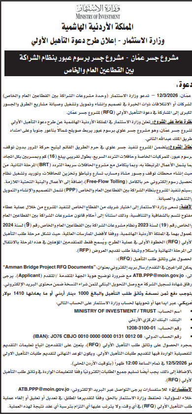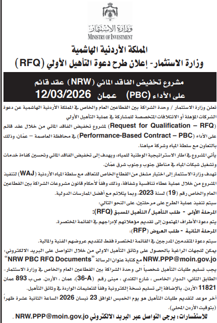 عطاءات صادرة عن وزارة الاستثمار