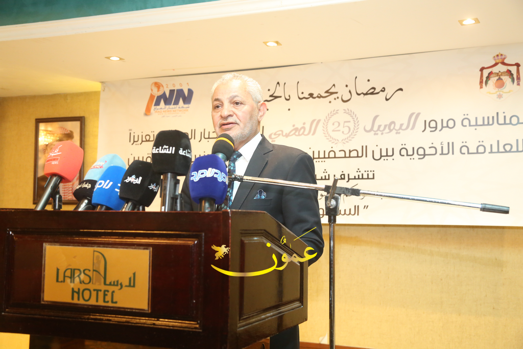 عمون - مندوبًا عن وزير الاتصال الحكومي الدكتور محمد المومني، رعى أمين عام وزارة الاتصال الحكومي الدكتور زيد النوايسة، أمسية رمضانية بمناسبة مرور اليوبيل الفضي (25 عامًا) على تأسيس شبكة أخبار العراق، وذلك مساء الخميس 12 آذار 2026 في فندق لارسا بالعاصمة عمان. |