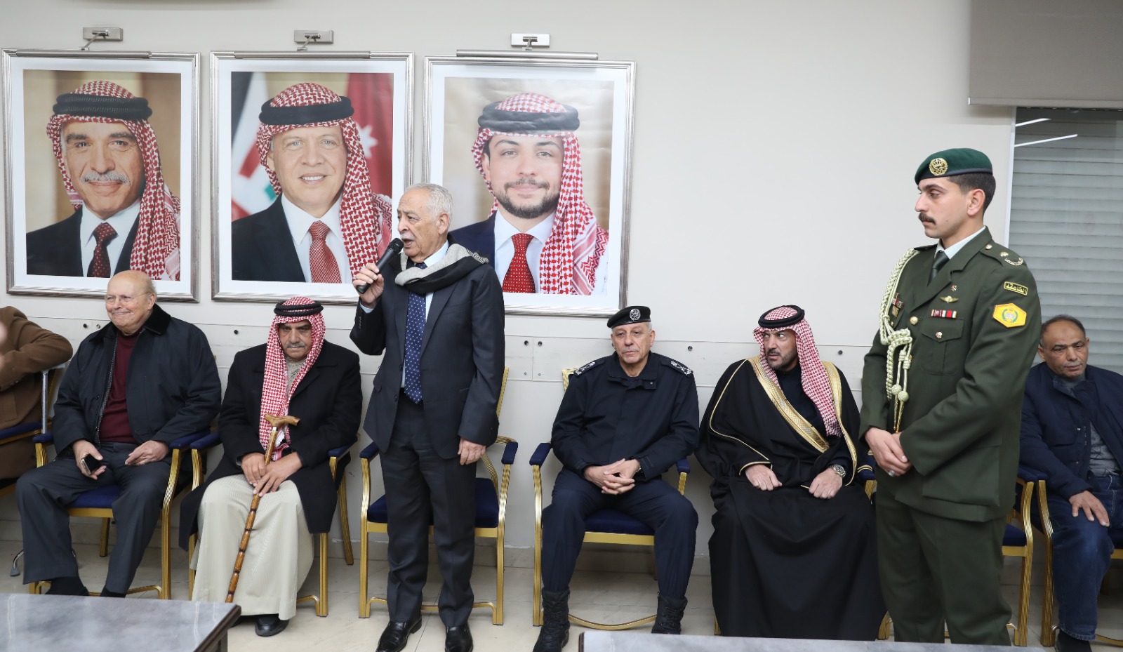 عمون - مندوبا عن جلالة الملك عبدالله الثاني وسمو الأمير الحسين بن عبدالله الثاني، ولي العهد، قدم رئيس الديوان الملكي الهاشمي يوسف حسن العيسوي، اليوم الجمعة، واجب العزاء إلى عشائرالحديد وماضي والمجالي والخمايسة والريحاني.
