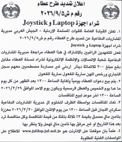 عطاء صادر عن القيادة العامة للقوات المسلحة الاردنية