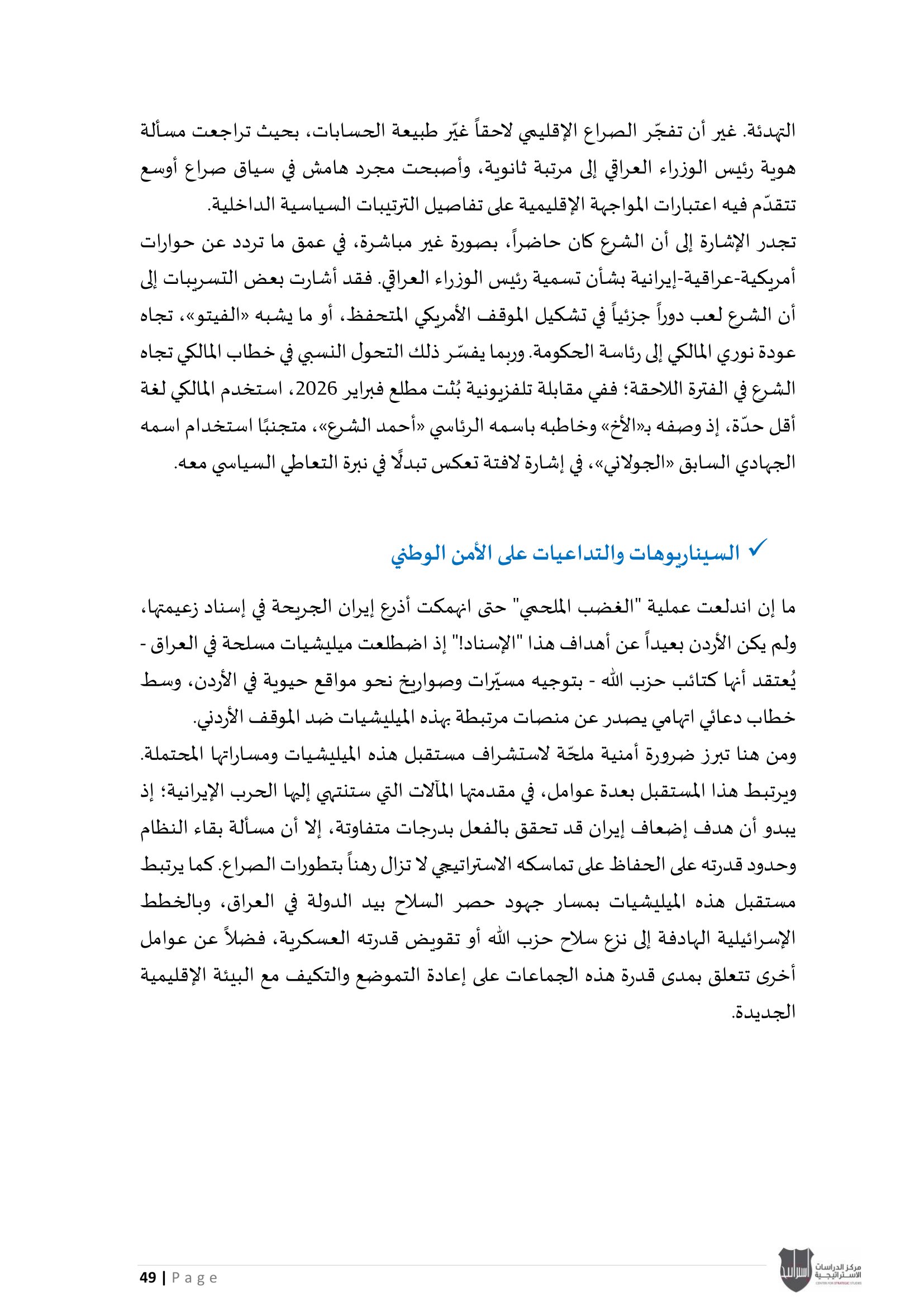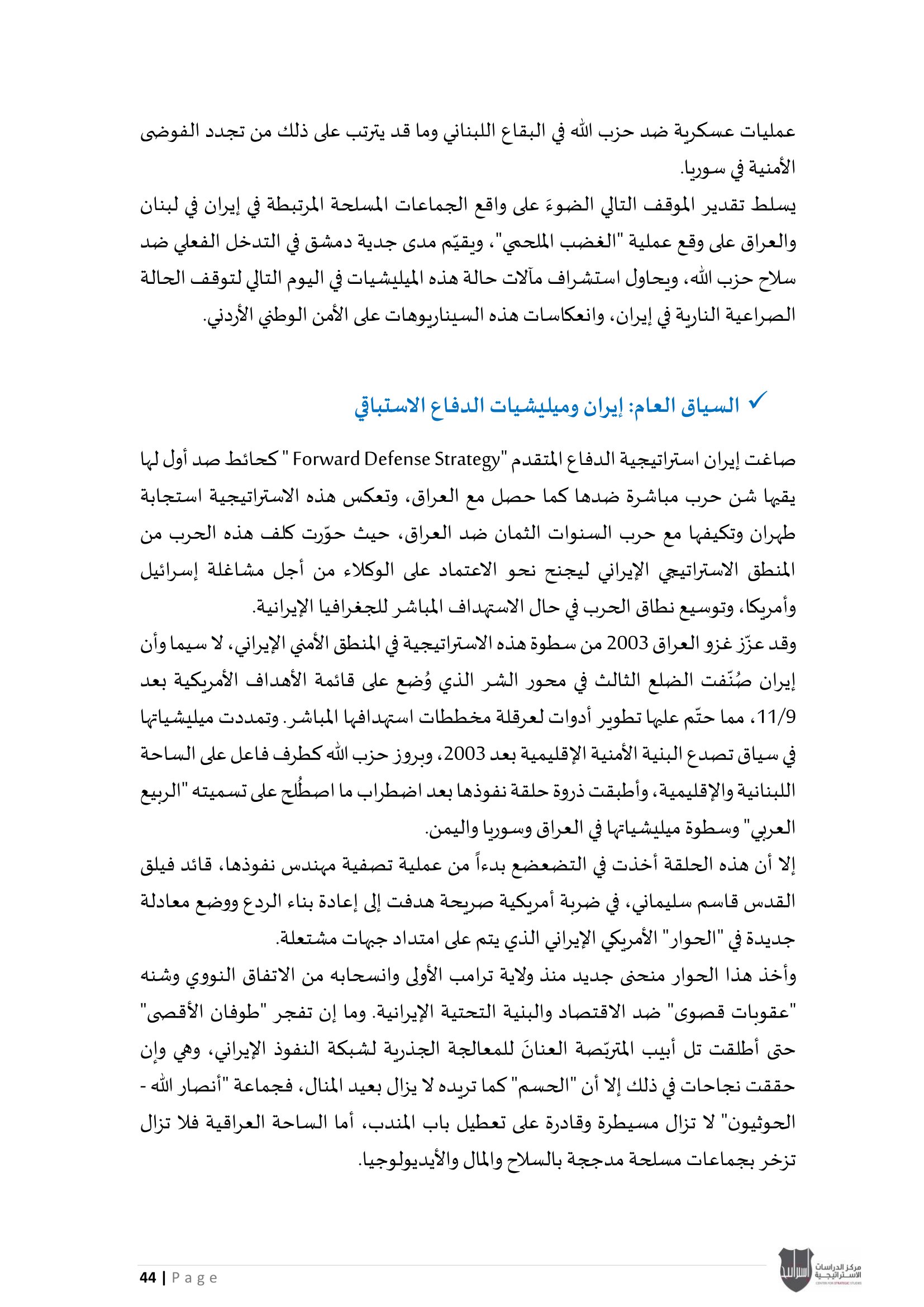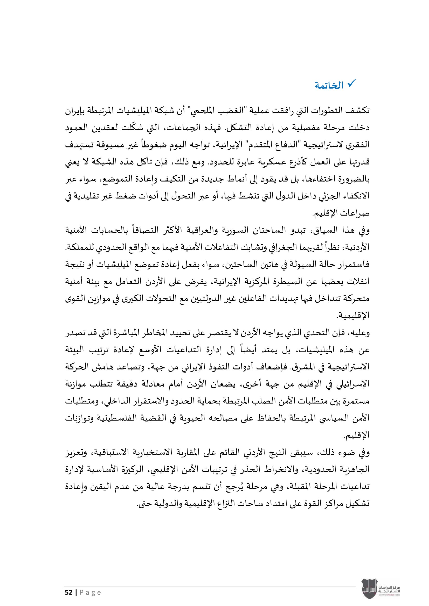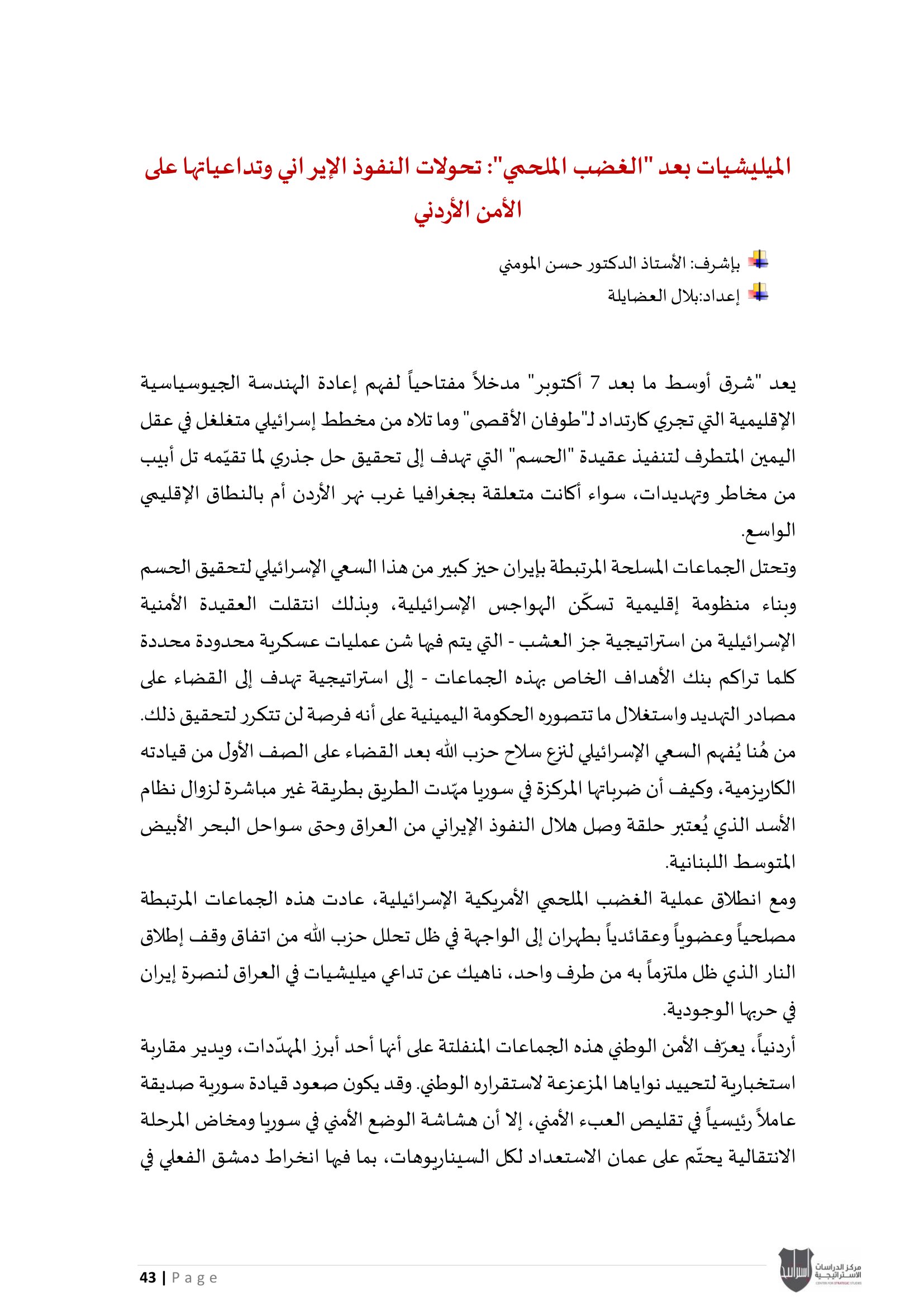 • الميليشيات بعد "الغضب الملحمي": تحولات النفوذ الإيراني وتداعياتها على الأمن الأردني".
