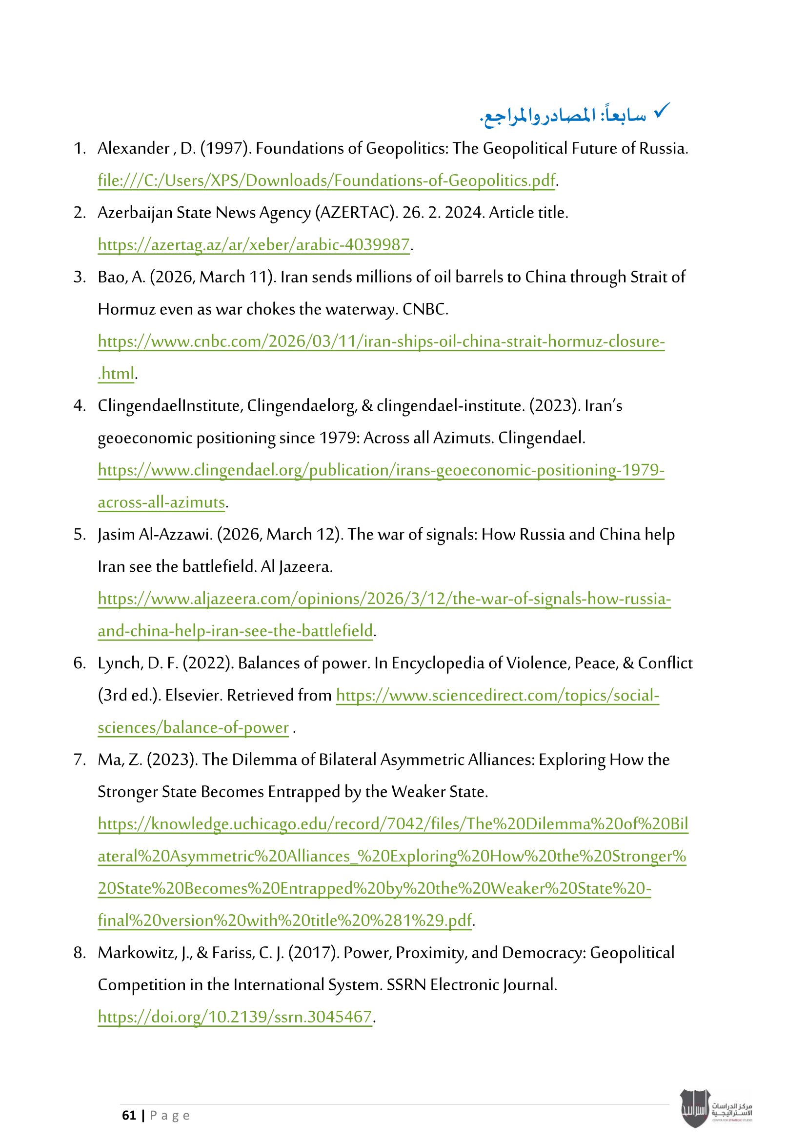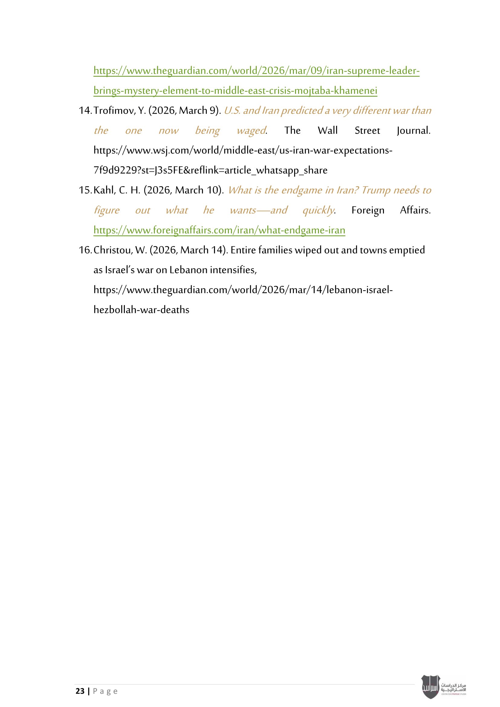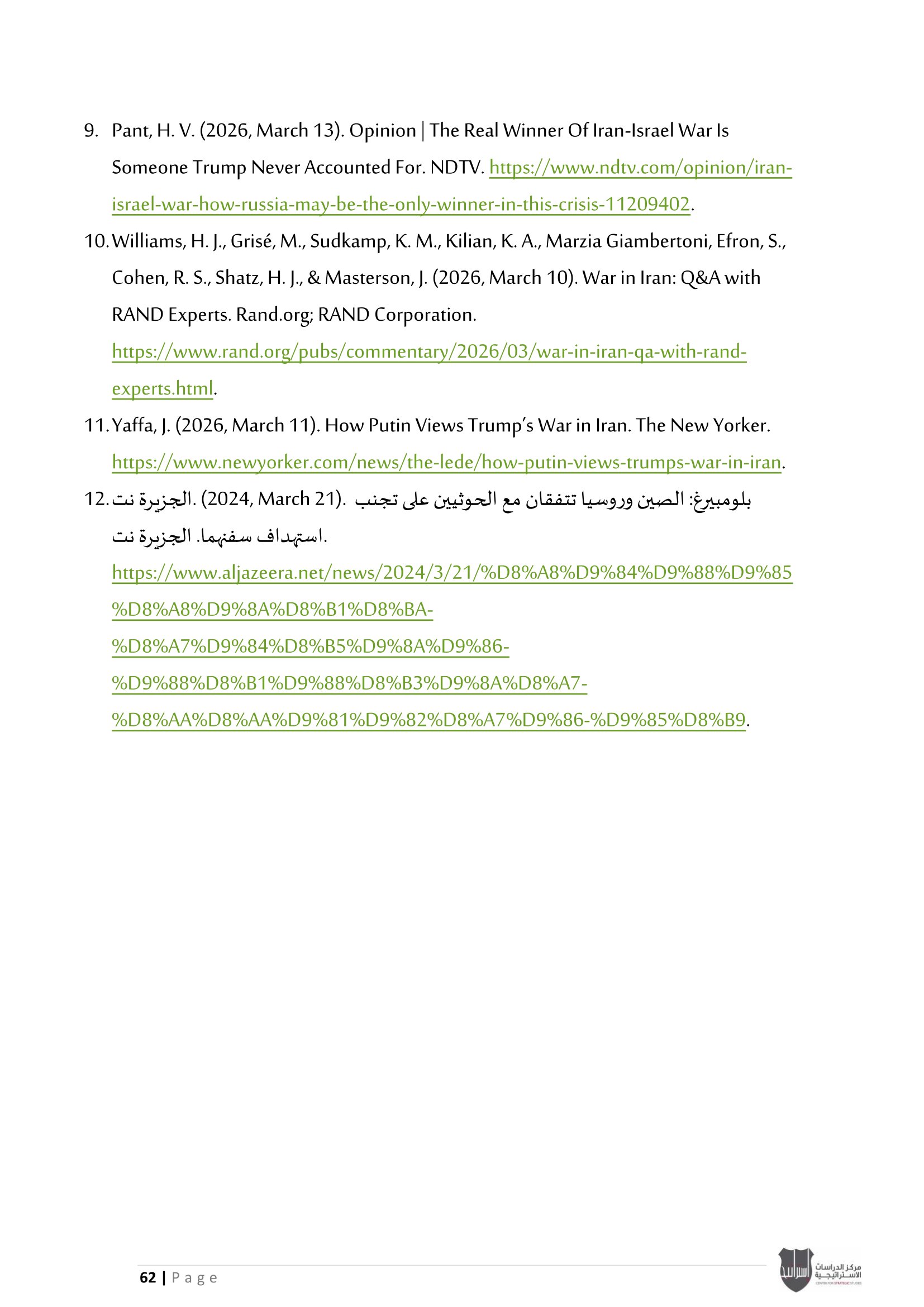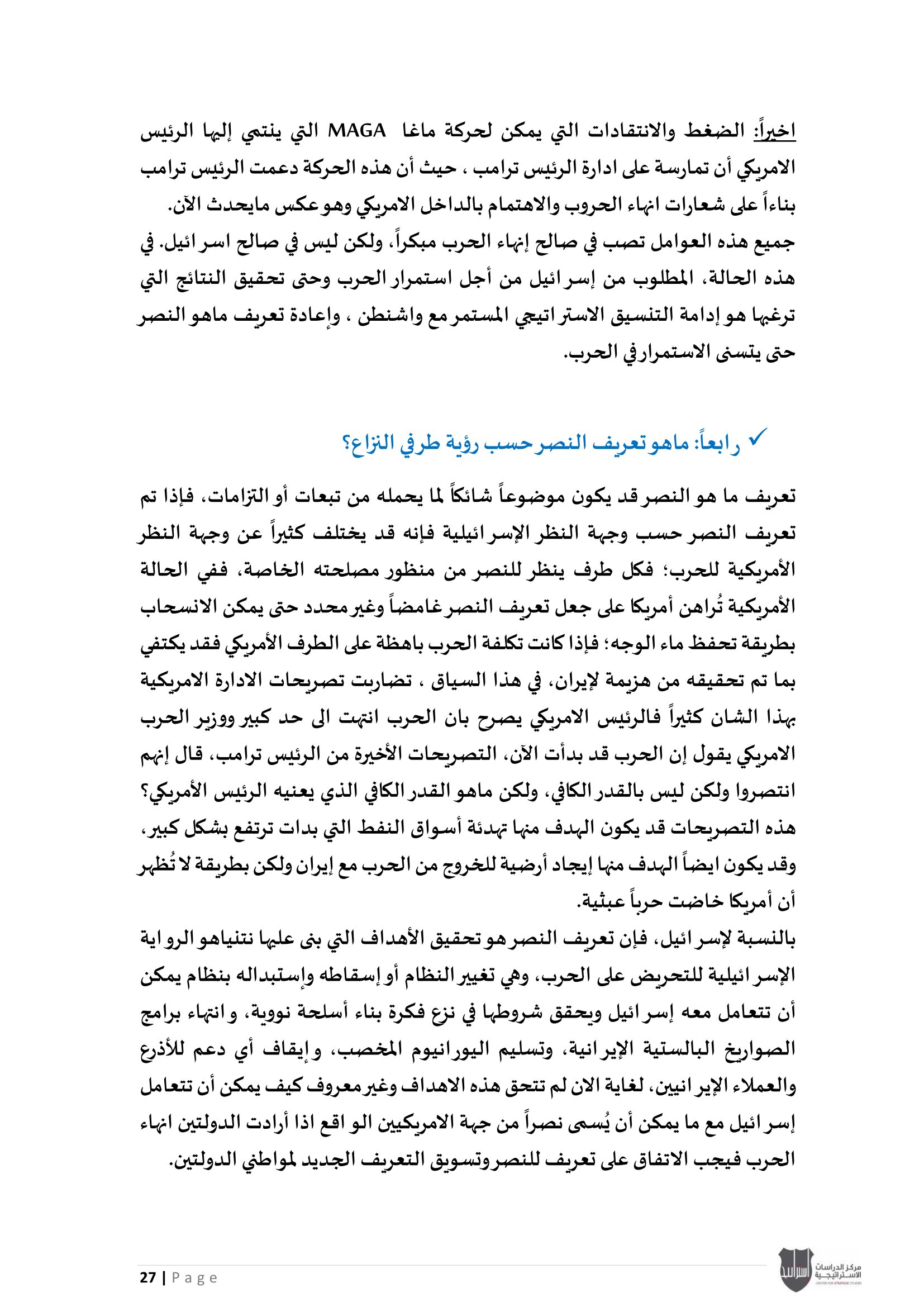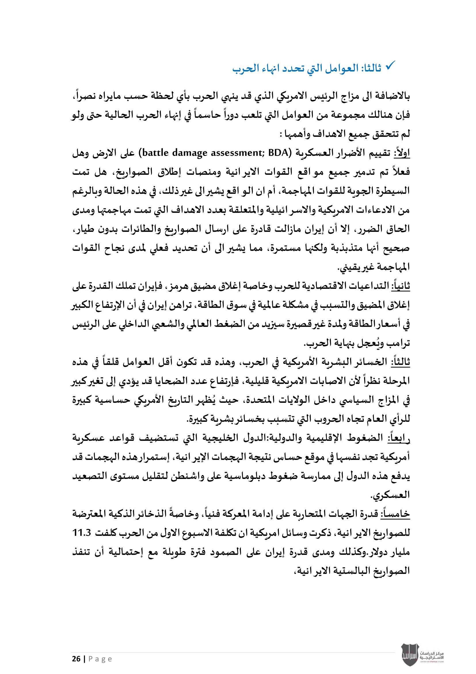 • إسرائيل والحرب على إيران: معضلة الحسم العسكري وإعادة تعريف النصر، إلى جانب تحليل موقف دول الخليج العربي من الحرب الأمريكية - الإيرانية بين الحياد الحذر وإدارة المخاطر.