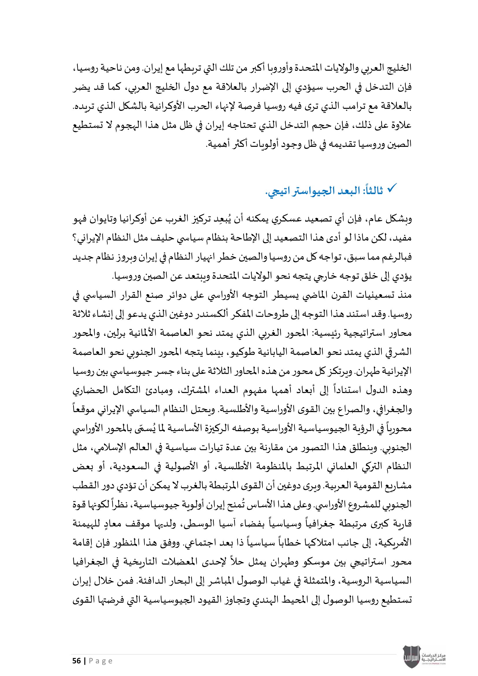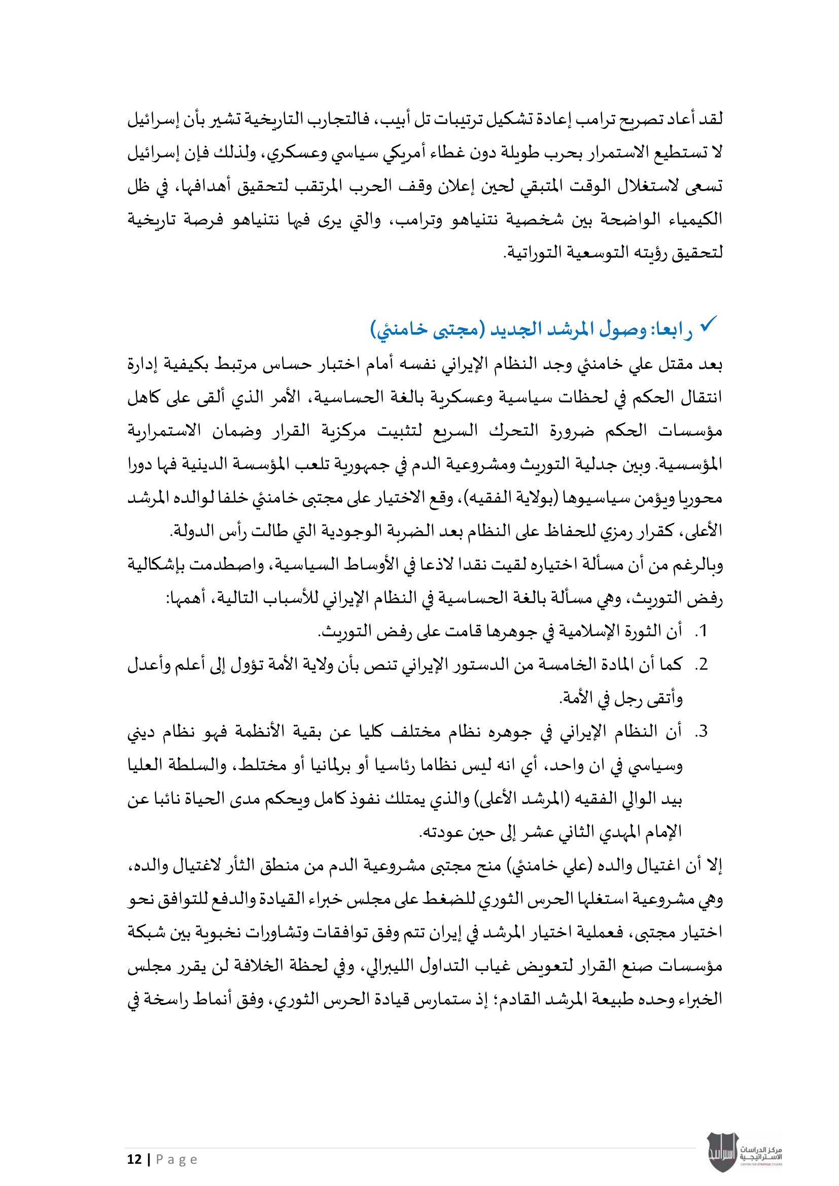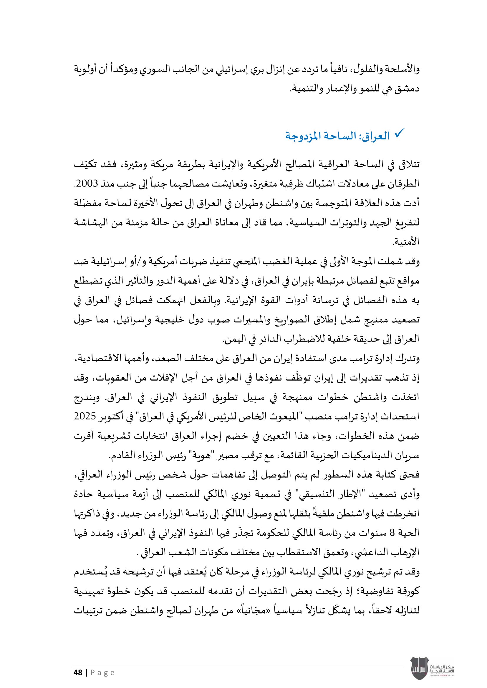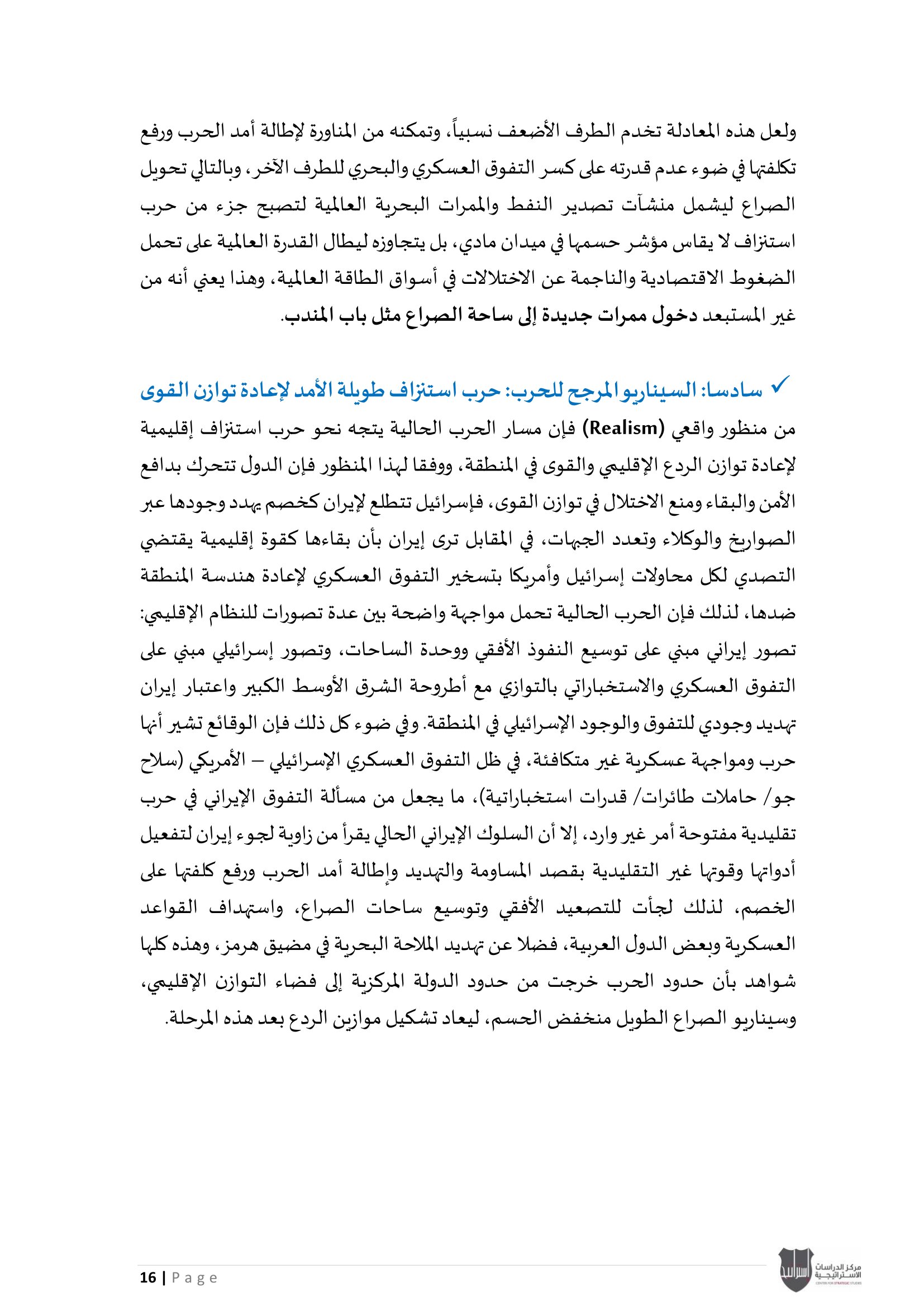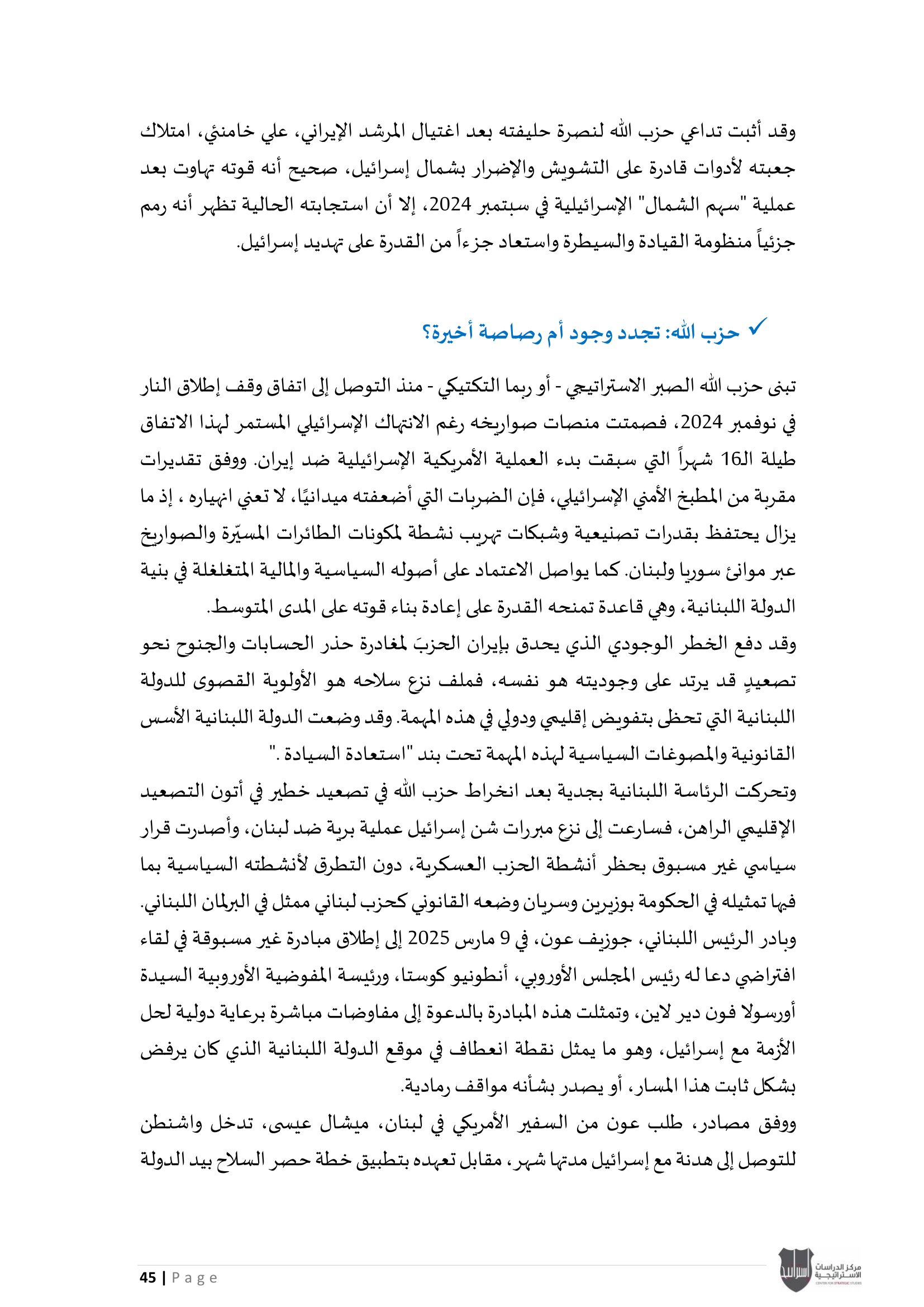 ويؤكد المركز أن هذا الإصدار يندرج ضمن سلسلة تقاريره الدورية التي تهدف إلى تقديم قراءة استراتيجية معمّقة، تسهم في استشراف الاتجاهات الكبرى في الإقليم، ودعم عملية صنع القرار من خلال تحليل علمي رصين يستند إلى متابعة دقيقة لمجريات الأحداث وتداعياتها المحتملة.