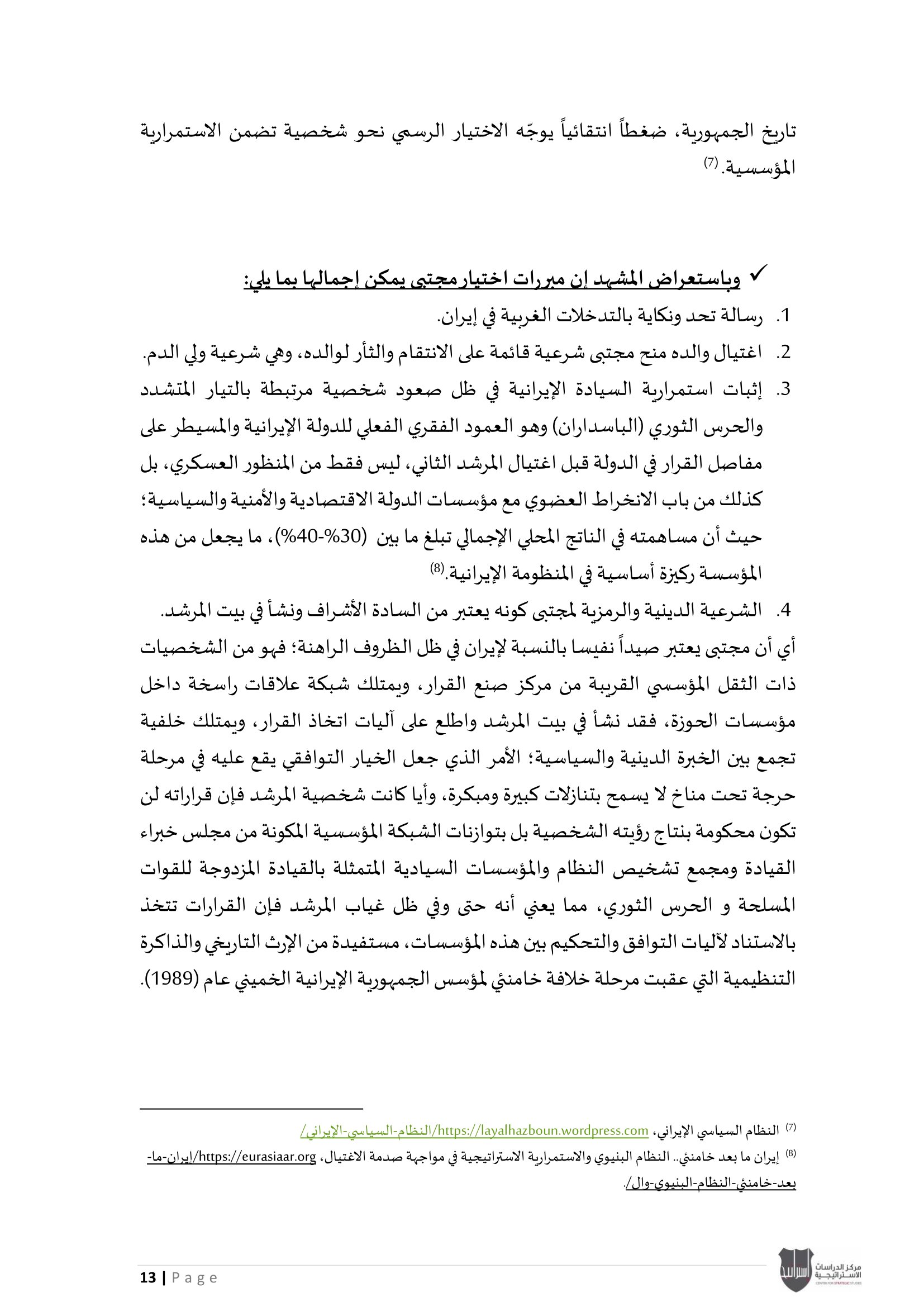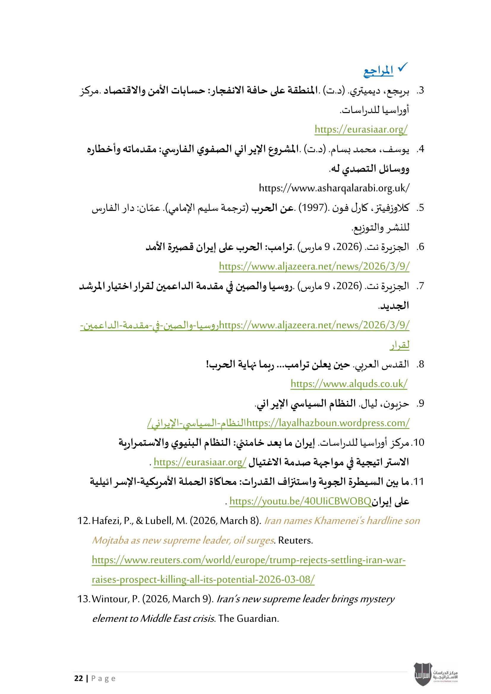 • بعد استمرار الحرب الأمريكية - الإسرائيلية على إيران لأكثر من أسبوعين: التداعيات والنتائج على النظام السياسي الإيراني، والسيناريوهات المتوقعة في حال توقفت الحرب.