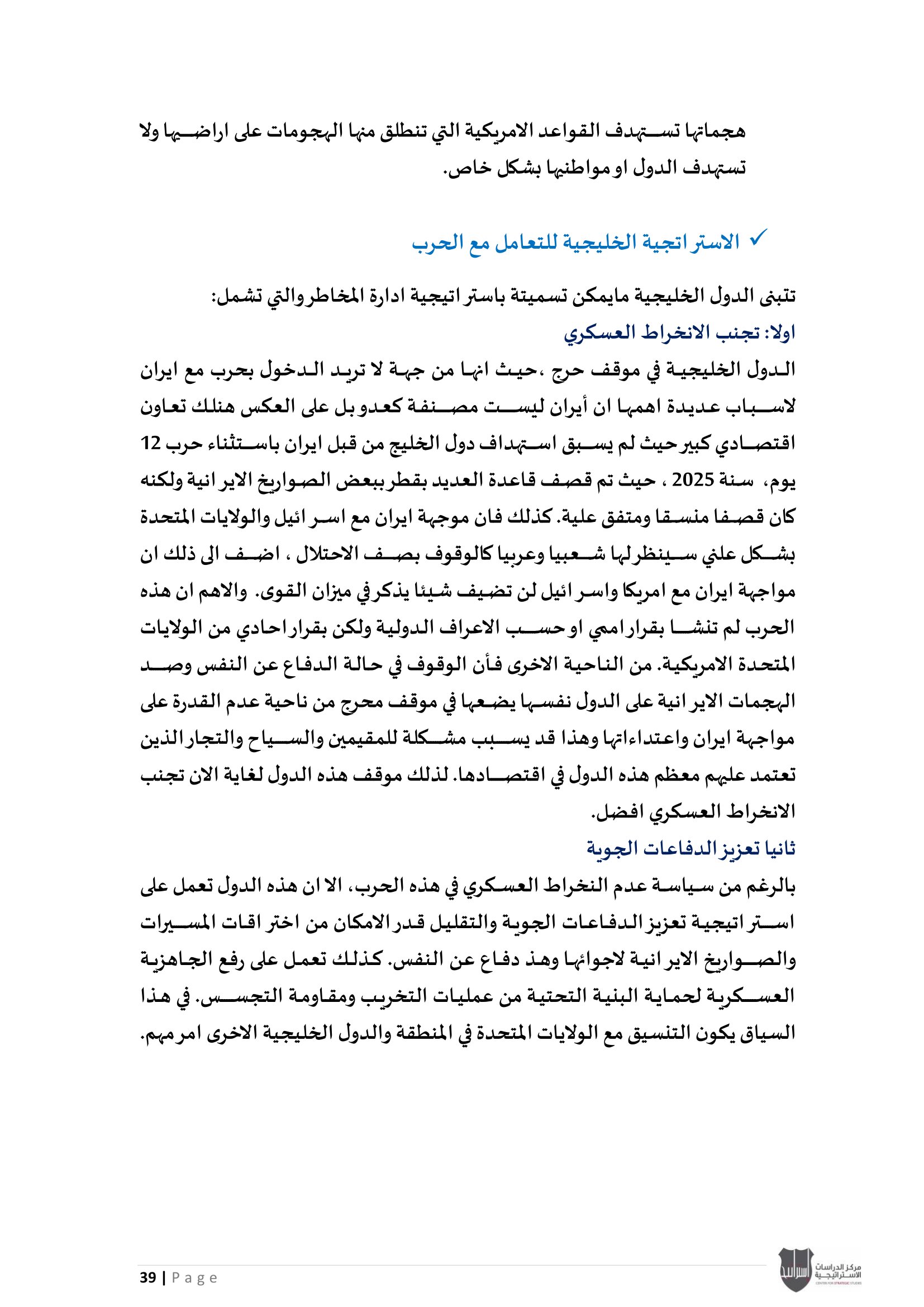 الدراسات الاستراتيجية يطلق قراءات تحليلية حول: "حرب الخليج الثالثة – التطورات والسيناريوهات"
