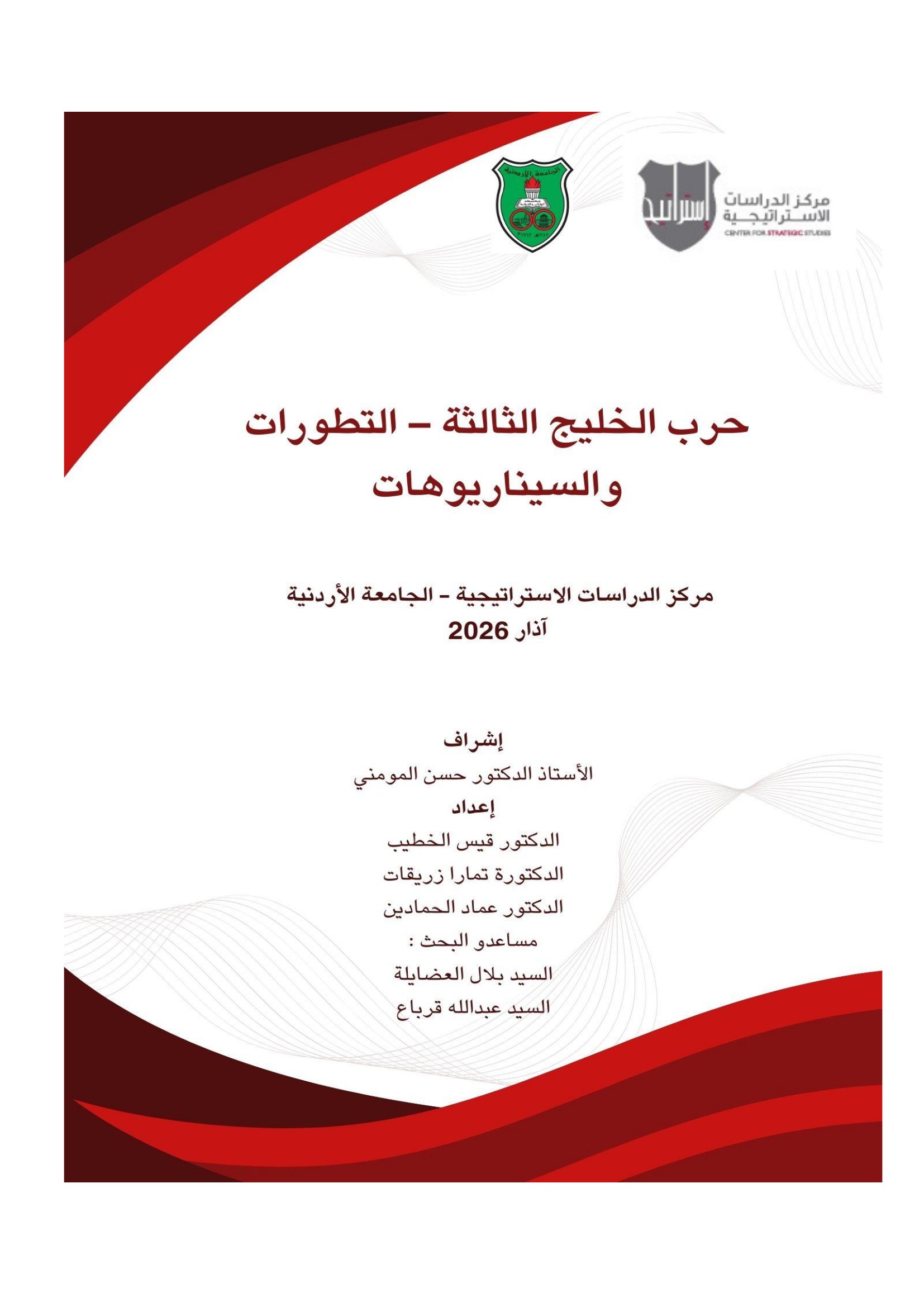 عمون - يطلق مركز الدراسات الاستراتيجية في الجامعة الأردنية سلسلة من قراءات تحليلية متخصصة، بعنوان: "حرب الخليج الثالثة – التطورات والسيناريوهات"، وذلك في إطار جهوده البحثية الرامية إلى دعم صُنّاع القرار والنخب السياسية والفكرية برؤى تحليلية معمّقة، تسهم في بناء فهم شامل للتفاعلات المحلية والإقليمية والدولية المؤثرة في البيئة الاستراتيجية للأردن والمنطقة.