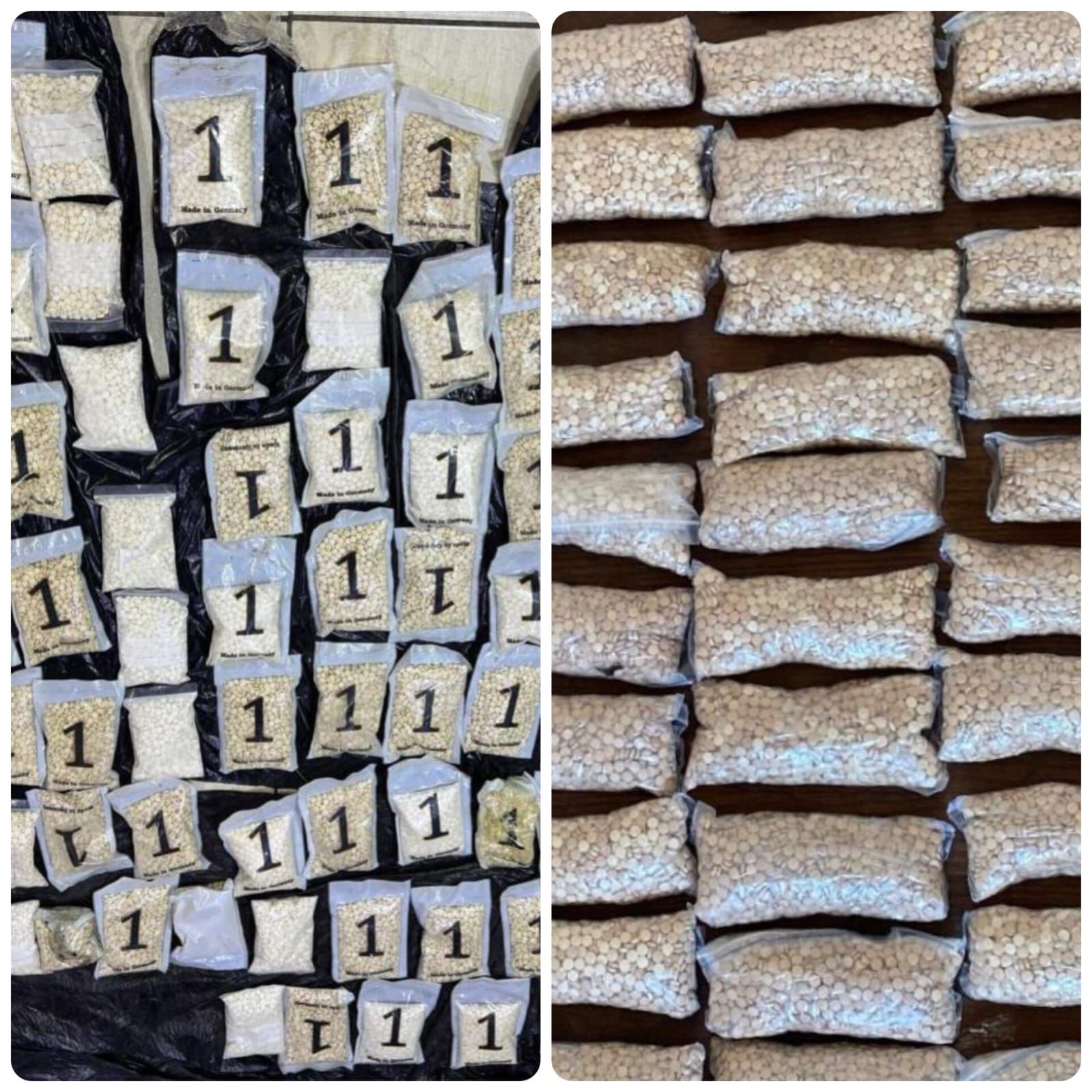 وفيما تم في البادية الشرقية ضبط 100 ألف حبّة مخدرة في منطقة صحراوية قام أحد المهربين بإخفائها هناك بعد أن ألقي القبض عليه وضُبطت المواد بدلالته، وفي منطقة الرويشد أُلقي القبض كذلك على مهرب للمخدرات بعد مداهمته داخل منزله وضُبط بحوزته 50 ألف حبة مخدرة.