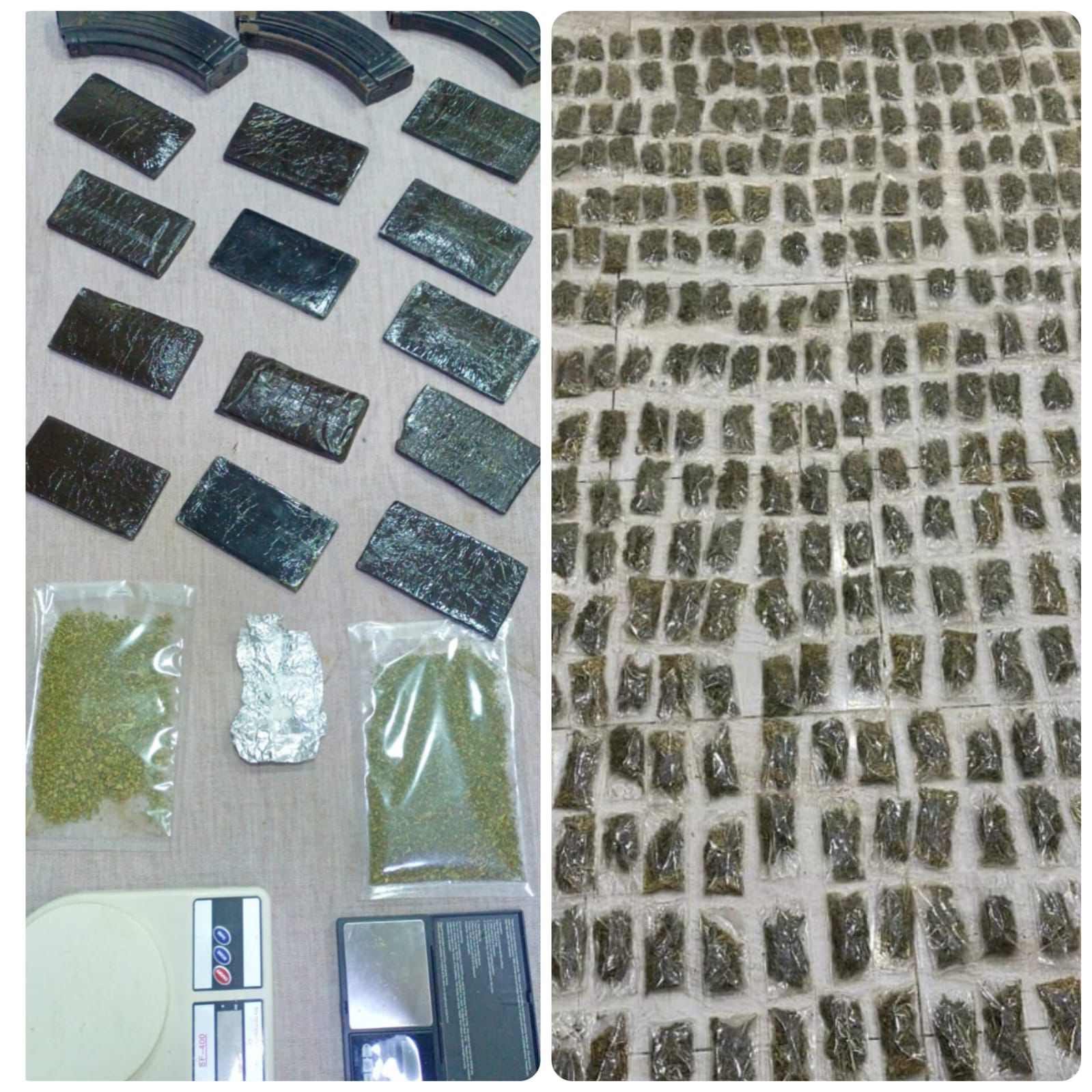 كما دوهم مروج للمخدرات في محافظة إربد وضُبط بحوزته 5 كفوف حشيش و 500 حبّة مخدرة ،وفي وسط عمّان ضُبط 14 كف حشيش بحوزة أحد تجّار المخدرات بعد مداهمته وإلقاء القبض عليه.