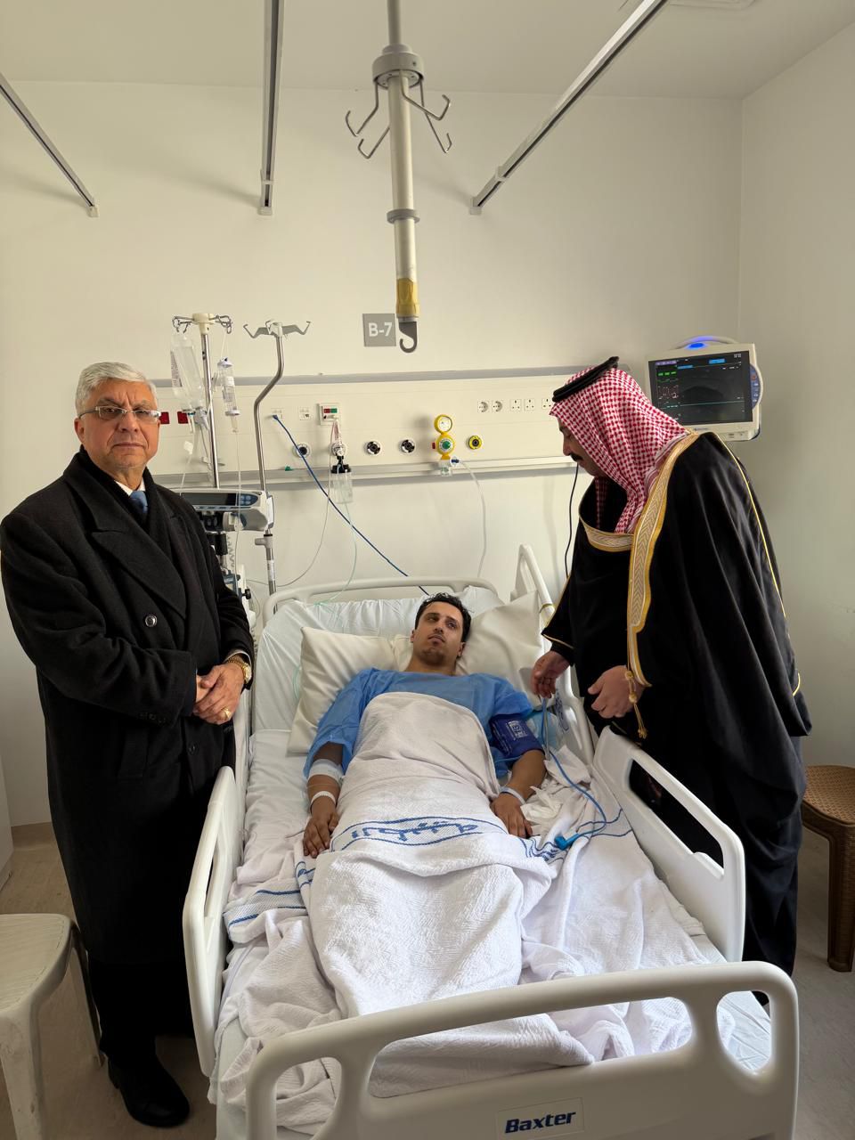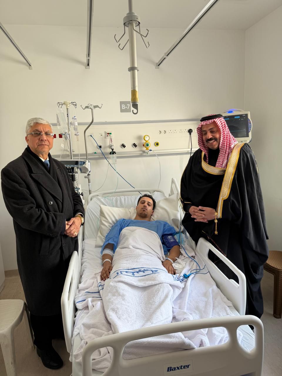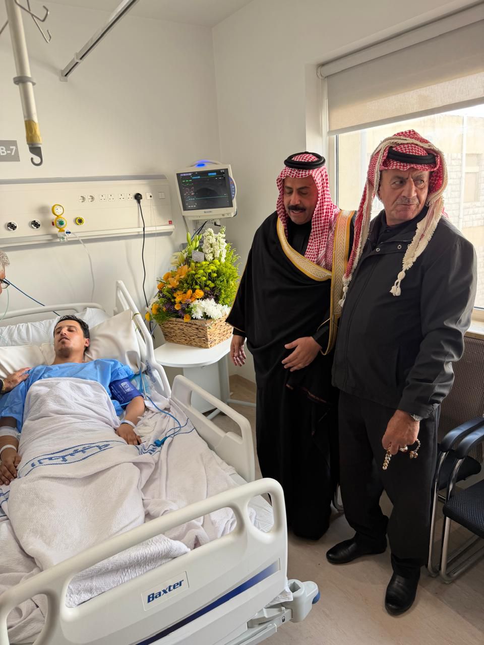 عمون - قام الدكتور أيمن البداوي والمهندس جهاد عبووي، نواب حزب الاتحاد الوطني الأردني، بزيارة أحد المصابين من نشامى مديرية الأمن العام، والذي أُصيب أثناء مشاركته في عملية مداهمة استهدفت أوكار أحد تجار المخدرات. |