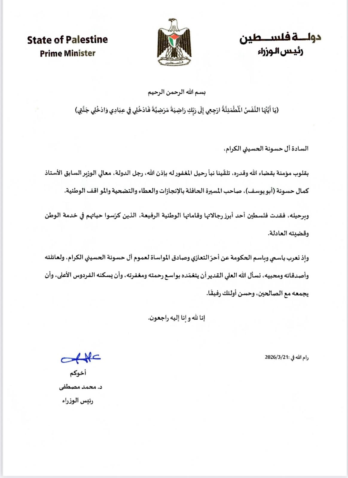 عمون - انتقل إلى رحمة الله تعالى السبت، الوزير الفلسطيني الأسبق