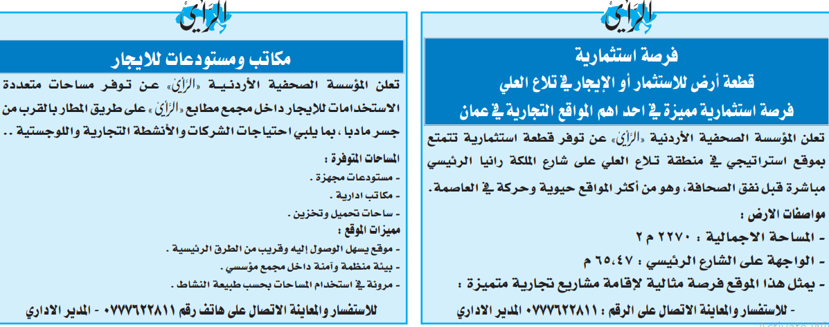 عطاءات صادرة عن المؤسسة الصحفية الاردنية "الرأي "