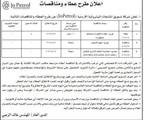 عطاءات صادرة عن شركة جوبترول
