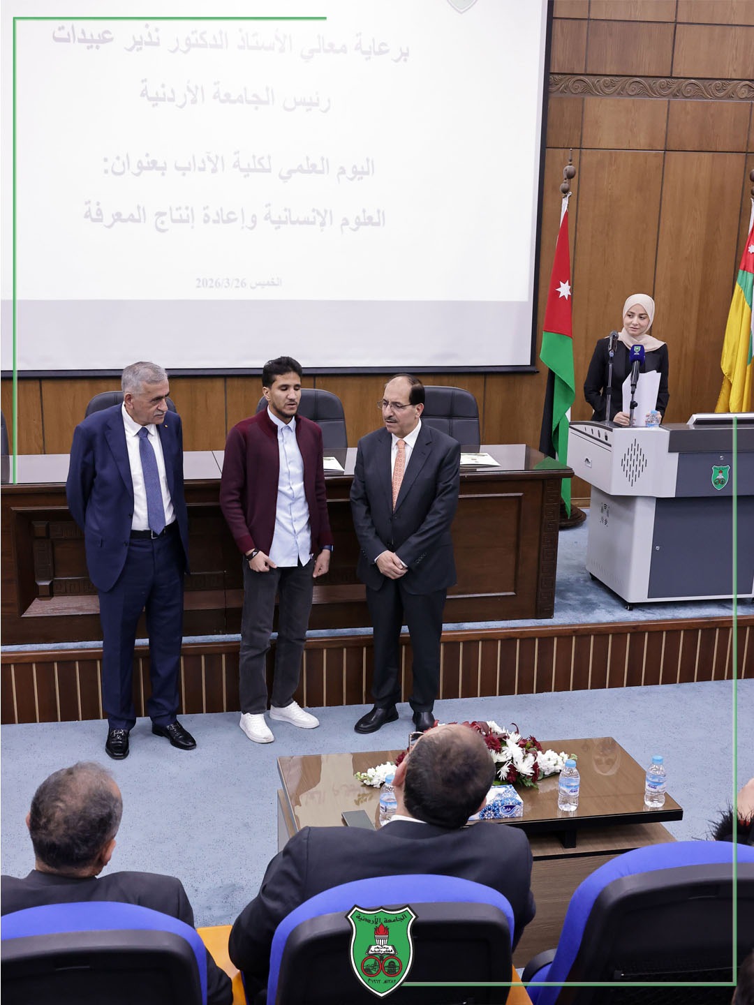 عمون - أقامت كلّيّة الآداب في الجامعة الأردنيّة يومَها العلميّ بعنوان "العلوم الإنسانيّة وإعادة إنتاج المعرفة"، برعاية رئيس الجامعة الدّكتور نذير عبيدات ومشاركة واسعة من أعضاء الهيئتين التّدريسيّة والإداريّة وجمعٍ من الطّلبة والمهتمّين.