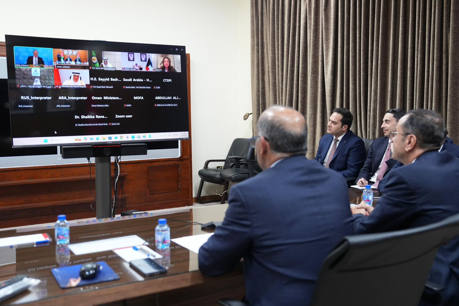 عمون - شارك أمين عام وزارة الخارجية وشؤون المغتربين السفير ضيف الله الفايز اليوم في الاجتماع الوزاري المشترك الأردني - الخليجي - الروسي، عبر تقنية الاتصال المرئي.