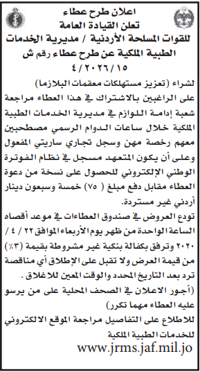عطاء صادر عن الخدمات الطبية الملكية