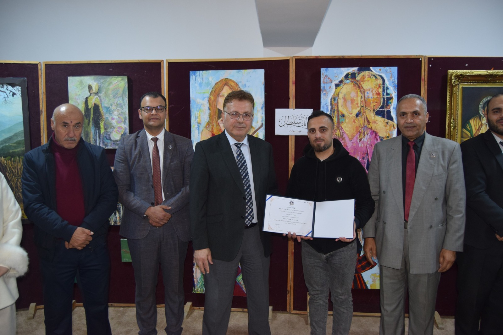 واختتمت الفعالية بتسليم رئيس الجامعة ونائب الرئيس وعميد كلية الآداب والفنون الشهادات التقديرية للفنانين والطلبة المشاركين، تقديرًا لإسهاماتهم المتميزة في إنجاح هذا الحدث الفني والثقافي.