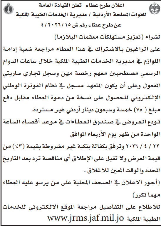 عطاء صادر عن الخدمات الطبية الملكية