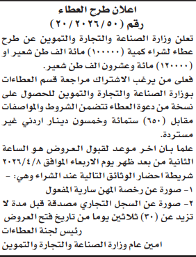 عطاء شراء "120" الف طن شعير