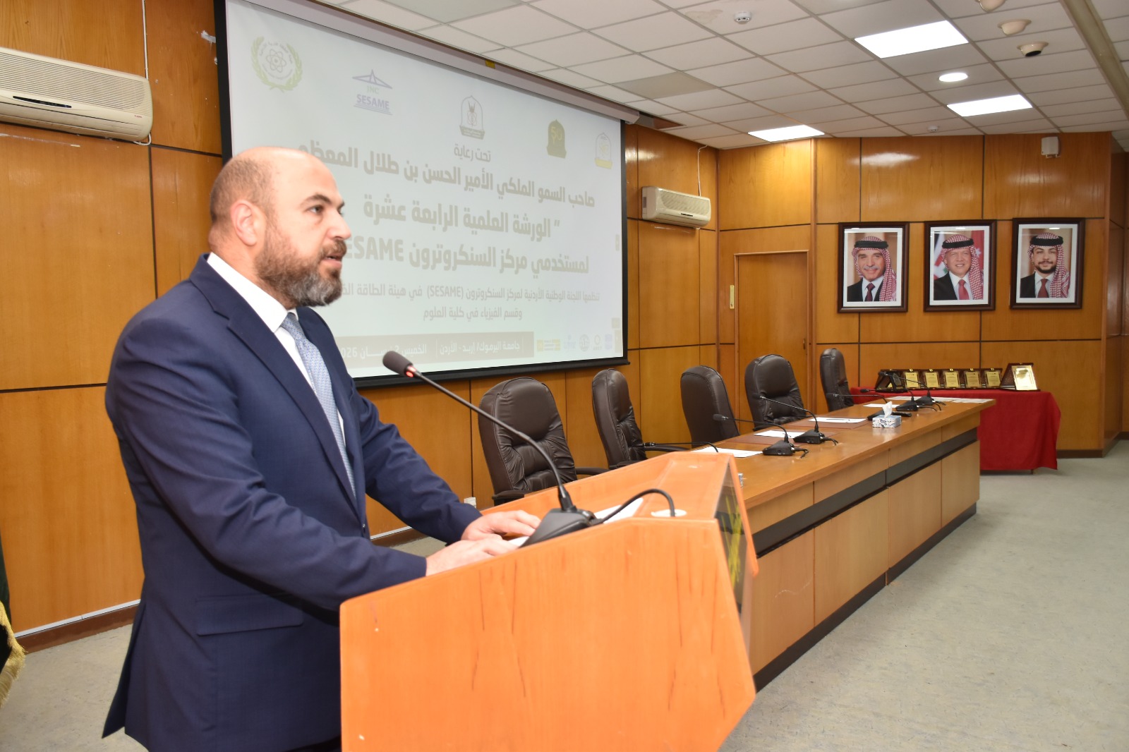 عمون - مندوبا عن سمو الأمير الحسن بن طلال، رعى رئيس هيئة الطاقة الذرية الأردنية - المدير العام لمركز السنكروترون للعلوم التجريبية وتطبيقاتها في الشرق الأوسط (SESAME) الأستاذ الدكتور خالد طوقان، بحضور رئيس جامعة اليرموك الأستاذ الدكتور مالك الشرايري، ومفوّض العلوم النووية في هيئة الطاقة الذرية الأردنية الأستاذ الدكتور فراس عفانة، أفتتح في جامعة اليرموك فعاليات "الورشة العلمية الرابعة عشرة لمستخدمي مركز السنكروترون، التي نظمتها اللجنة الوطنية الأردنية لمركز السنكروترون في هيئة الطاقة الذرية الأردنية وقسم الفيزياء في كلية العلوم بالجامعة.