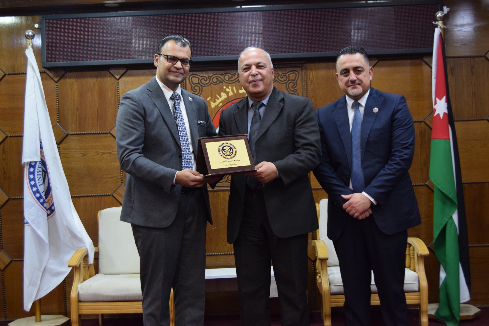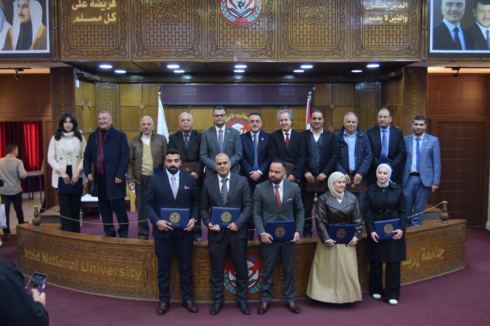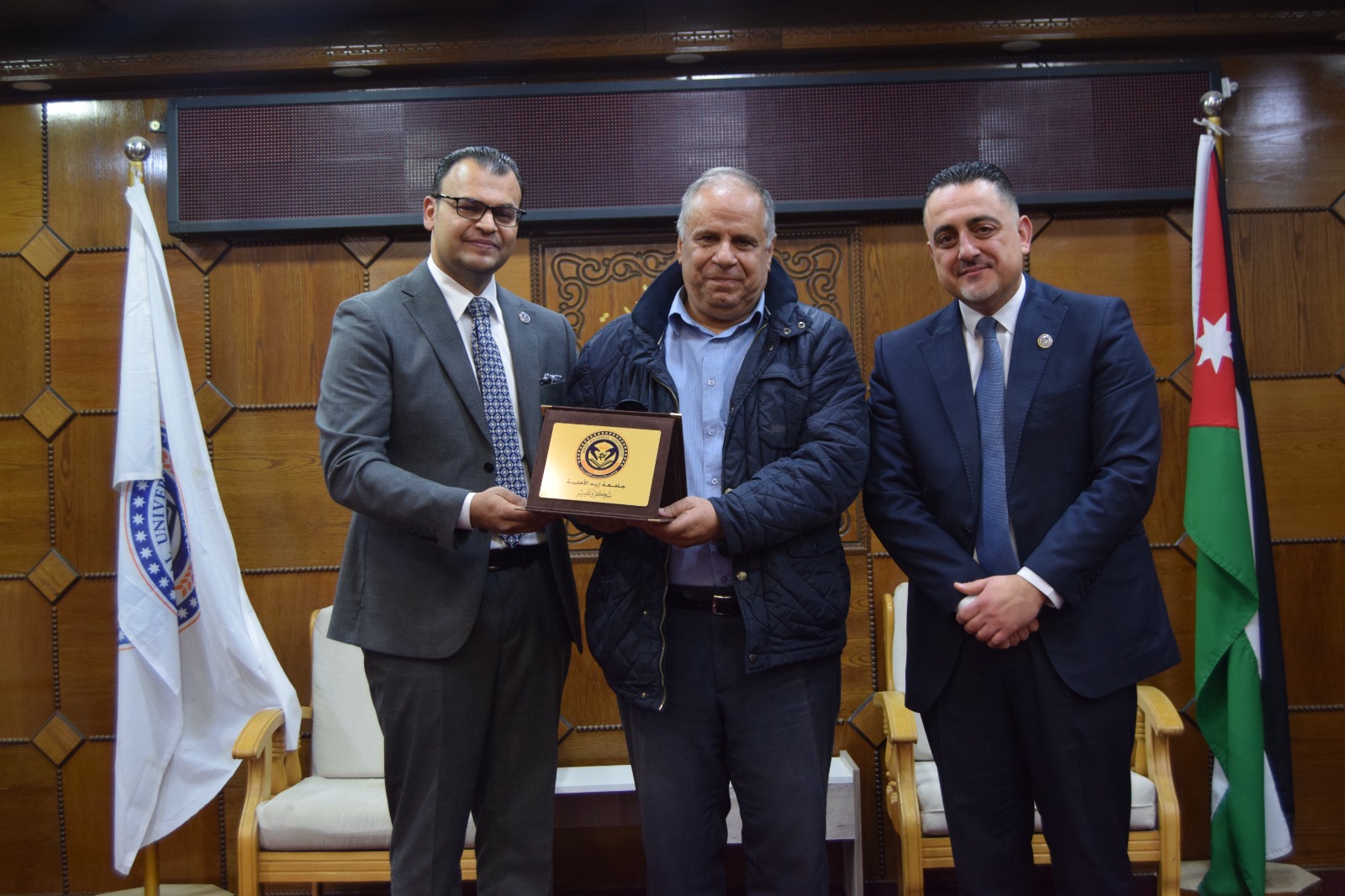 ويُشار إلى أن الحفل استُهل بالسلام الملكي، ثم تلاوة عطرة من آيات الذكر الحكيم قدّمها الطالب أحمد المعلا، كما شهد عرضًا موجزًا لأهم النتائج والتوصيات التي توصلت إليها الرسائل الفائزة، ما أضفى على المناسبة بُعدًا علميًا وتفاعليًا، تلاه حوار أكاديمي بين الطلبة وأعضاء الهيئة التدريسية حول مستقبل البحث العلمي وآفاق تطوير برامج الدراسات العليا في الجامعة.
